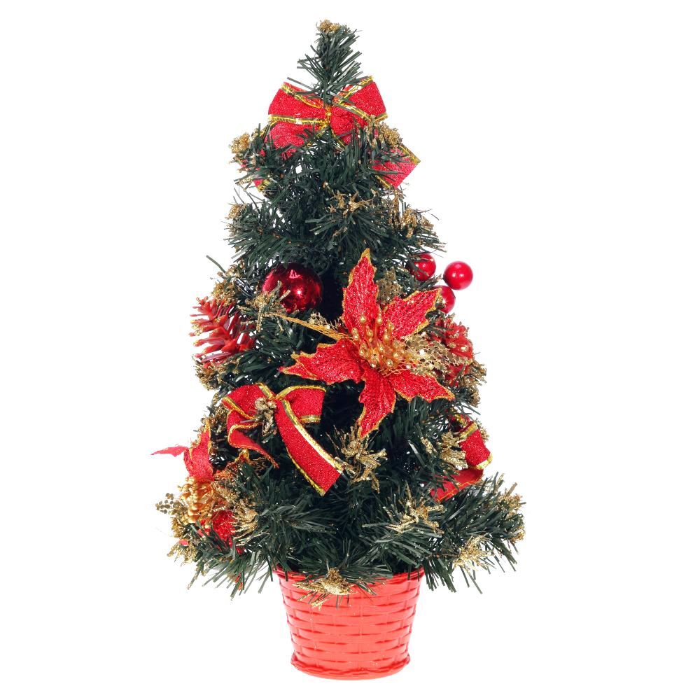 Елка искусственная с украшениями высотой 20см. Изготовлена из металла , полимерной пленки и фольги. Игрушки и корзина - из пластика, цветы и бант - из текстиля, шишки натуральные. Все украшения в золотом цвете. Создаст праздничную обстановку и украсит любой интерьер.
