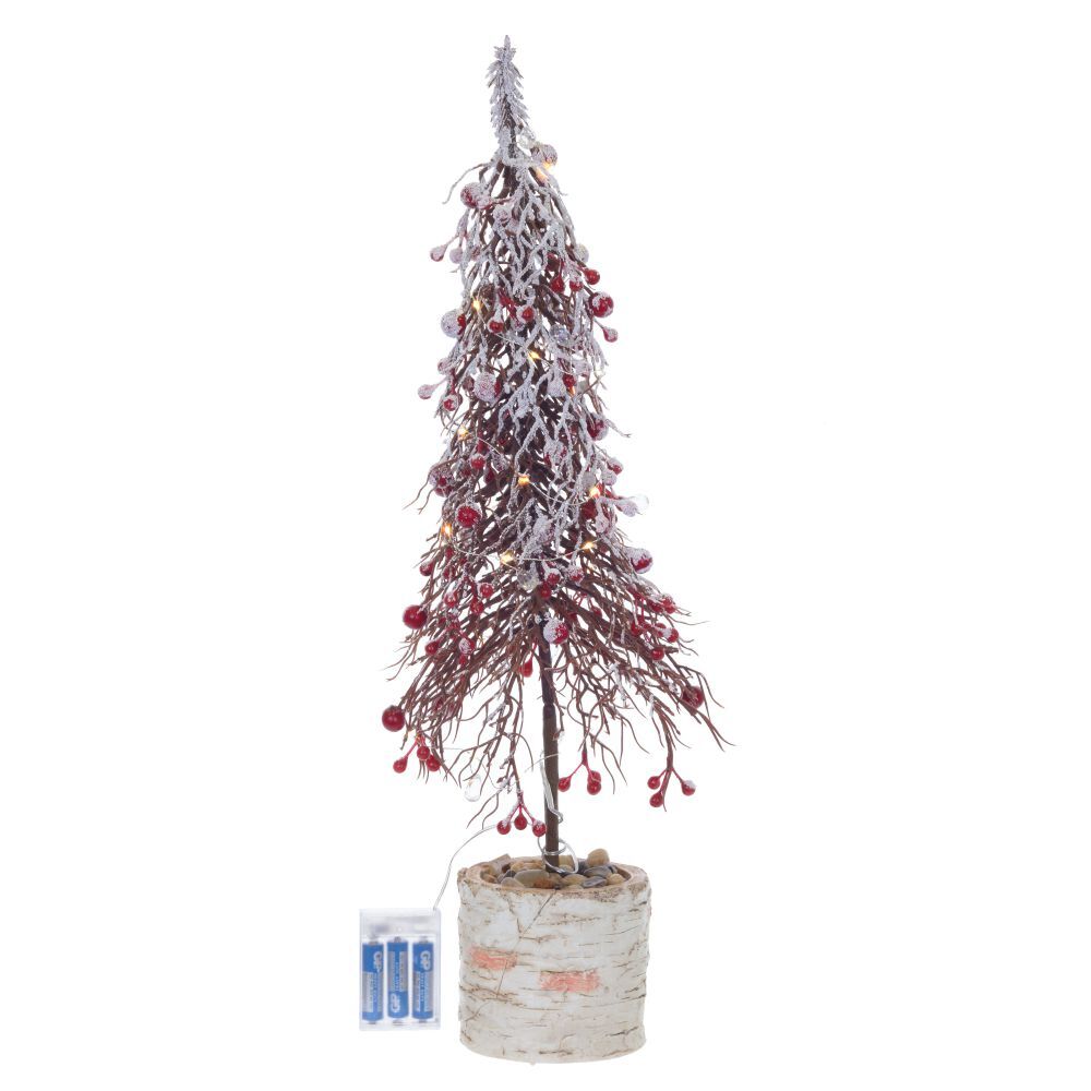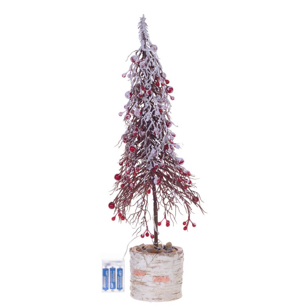 Елка искусственная с ягодами закреплена на устойчивой подставке. Елка не требует сборки. Просто распушите ветки, включите подсветку и лесная красавица украсит ваш интерьер к празднику. Работает от трех батареек АА (не прилагаются).