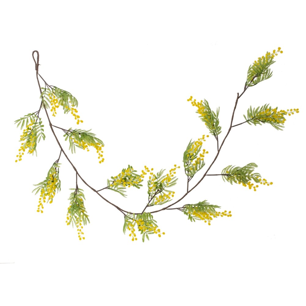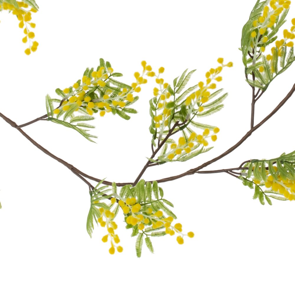 Пасхальная гирлянда «Мимоза» — это изысканное декоративное украшение, которое придаст вашему интерьеру весеннюю легкость и праздничное настроение. Выполненная из полимерных и текстильных материалов, она точно имитирует натуральные веточки мимозы с их пушистыми желтыми соцветиями и нежными зелеными листочками. Длина гирлянды составляет 141 см, что позволяет использовать ее для декора различных поверхностей: каминов, дверных проемов, окон, полок или праздничного стола. Гибкий металлический каркас обеспечивает удобное крепление и возможность придавать изделию желаемую форму. Такая гирлянда станет отличным украшением для дома в период Пасхи, весенних праздников или тематических мероприятий, добавляя уют и природную эстетику.