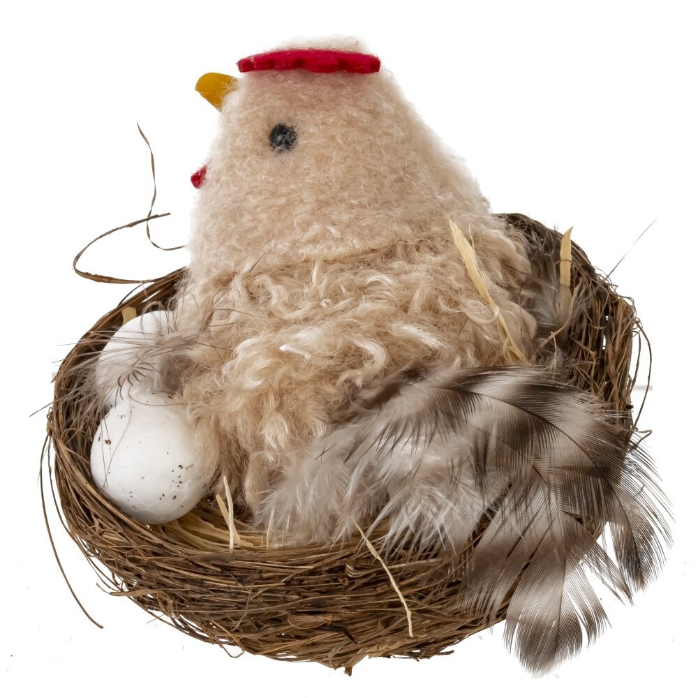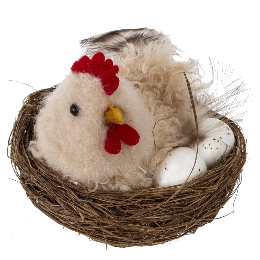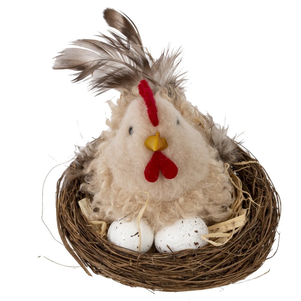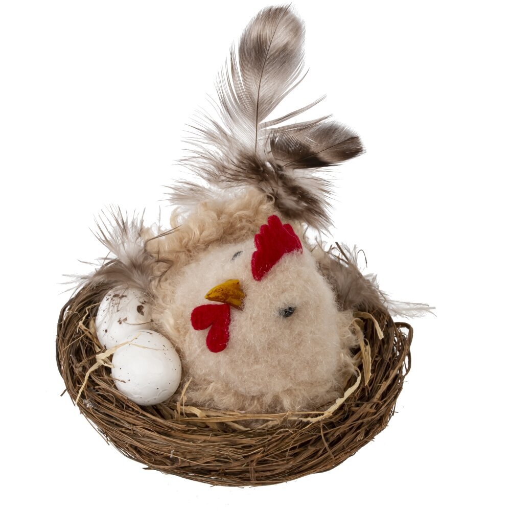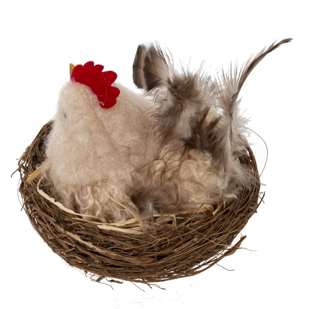 Декоративное изделие "Гнездо пасхальное" выполнено из полимерных, текстильных и натуральных материалов, идеально дополняя праздничный интерьер. Композиция включает аккуратно сплетённое гнездо с имитацией веточек, внутри которого уютно расположена мягкая курочка из текстильных материалов с пушистым оперением, а рядом — белые яички с реалистичными деталями. Натуральные перышки и структурированная поверхность делают украшение особенно выразительным. Этот элемент декора добавит уют и создаст атмосферу праздника, идеально подходит для оформления пасхального стола, подарков или весенних композиций. Представлено в трех вариантах.