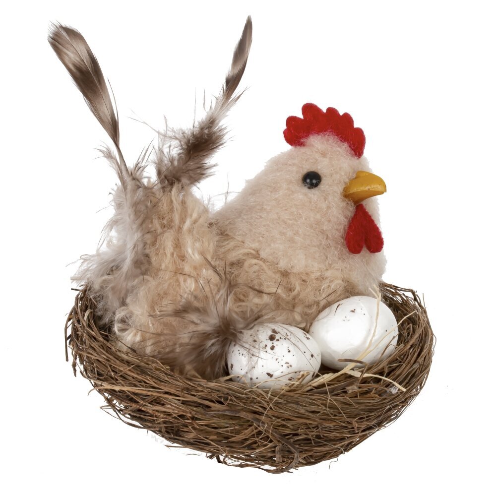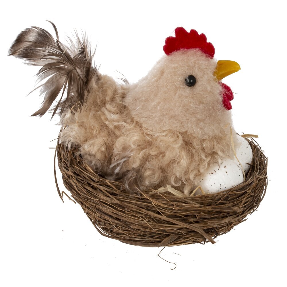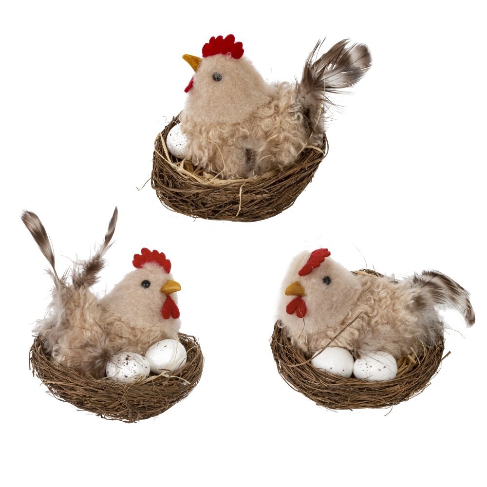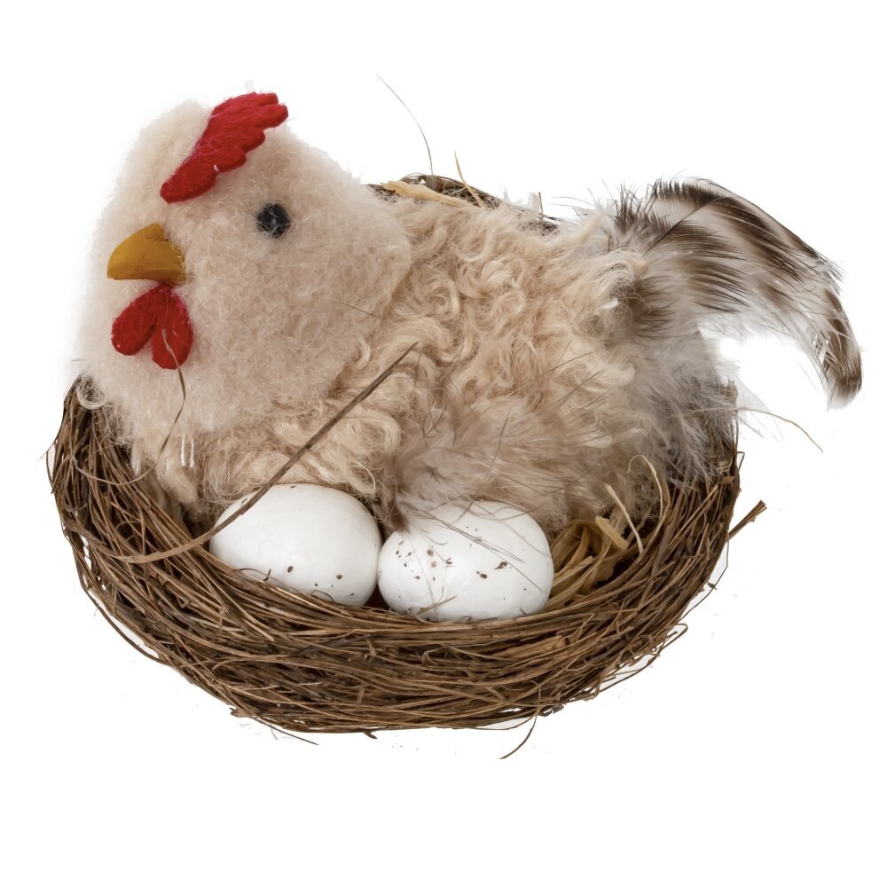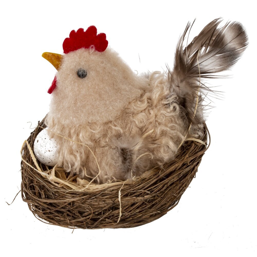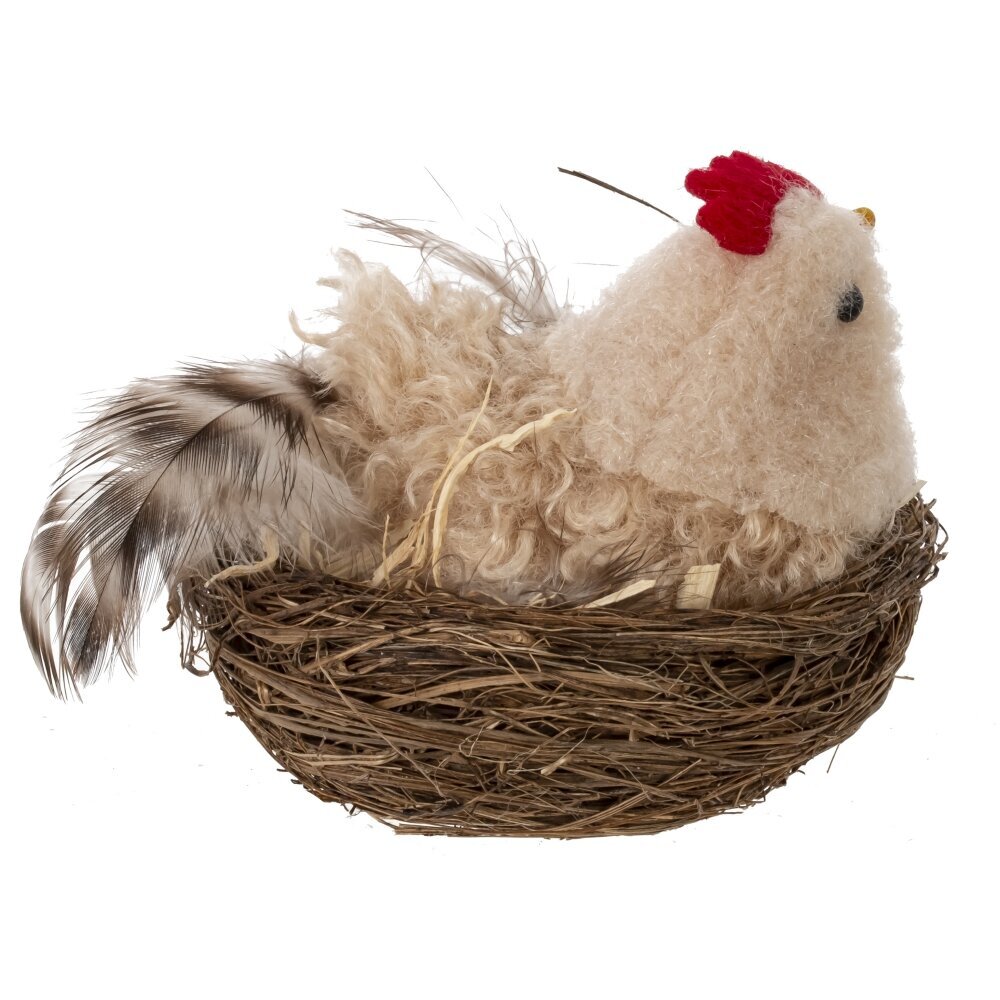 Декоративное изделие "Гнездо пасхальное" выполнено из полимерных, текстильных и натуральных материалов, идеально дополняя праздничный интерьер. Композиция включает аккуратно сплетённое гнездо с имитацией веточек, внутри которого уютно расположена мягкая курочка из текстильных материалов с пушистым оперением, а рядом — белые яички с реалистичными деталями. Натуральные перышки и структурированная поверхность делают украшение особенно выразительным. Этот элемент декора добавит уют и создаст атмосферу праздника, идеально подходит для оформления пасхального стола, подарков или весенних композиций. Представлено в трех вариантах.