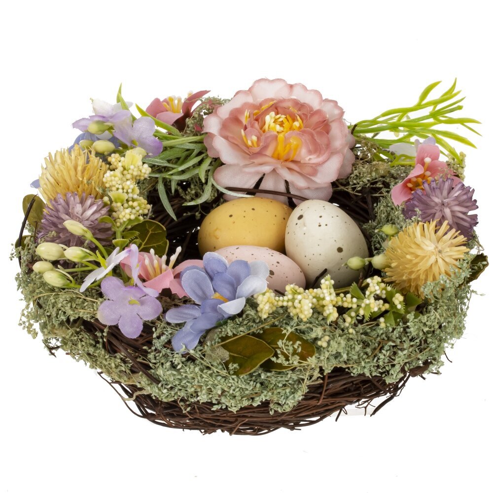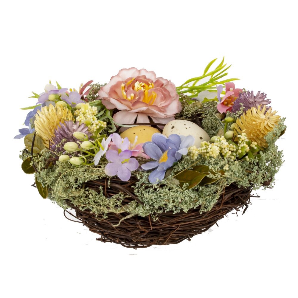 Декоративное изделие "Гнездо пасхальное" станет отличным украшением вашего дома в преддверии праздника Пасхи. Размеры изделия позволяют ему гармонично вписаться в любую интерьерную композицию. Гнездо, изготовленное из натуральных материалов, создает атмосферу уюта и тепла. Искусственные зеленые веточки и желтые цветы добавляют свежести и создают ощущение весеннего пробуждения. Декоративные яйца символизируют обновление и богатство жизни, что делает это изделие не только визуально привлекательным, но и наполненным глубоким смыслом. Такой элемент декора отлично подойдет для оформления стола, каминной полки. "Гнездо пасхальное" прекрасно дополняет как традиционный, так и современный стиль интерьера, а также станет замечательным подарком для ваших близких, даря им атмосферу благополучия и счастья на праздники. Удивите своих родных и друзей, украсив дом этим изысканным изделием, которое будет радовать глаз и поднимать настроение.