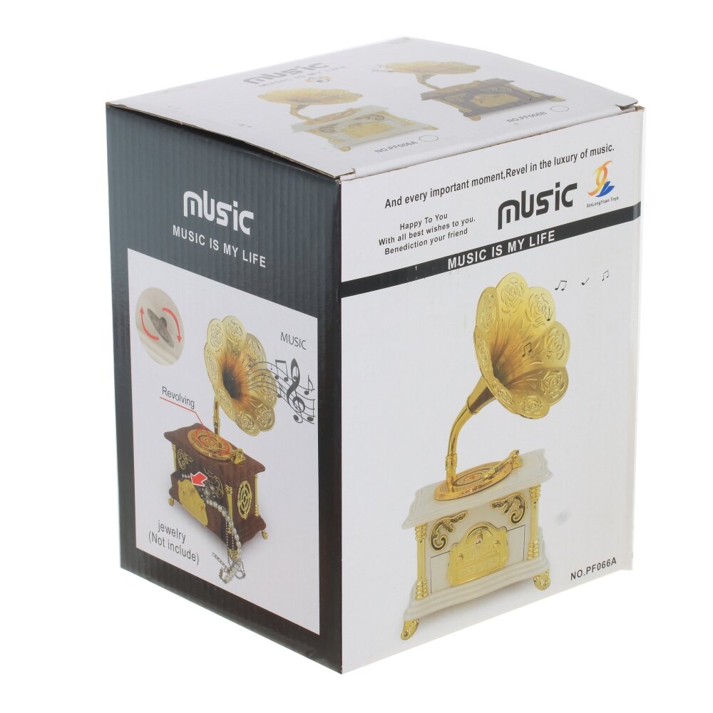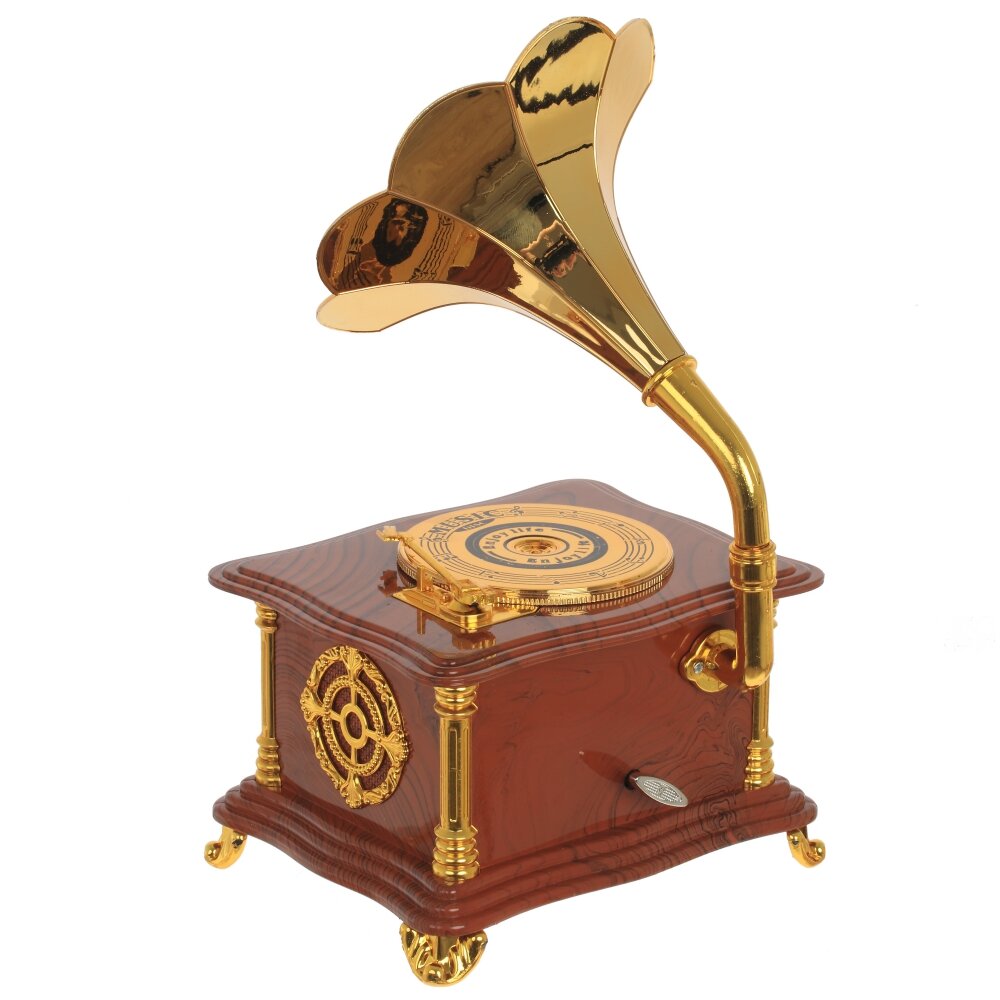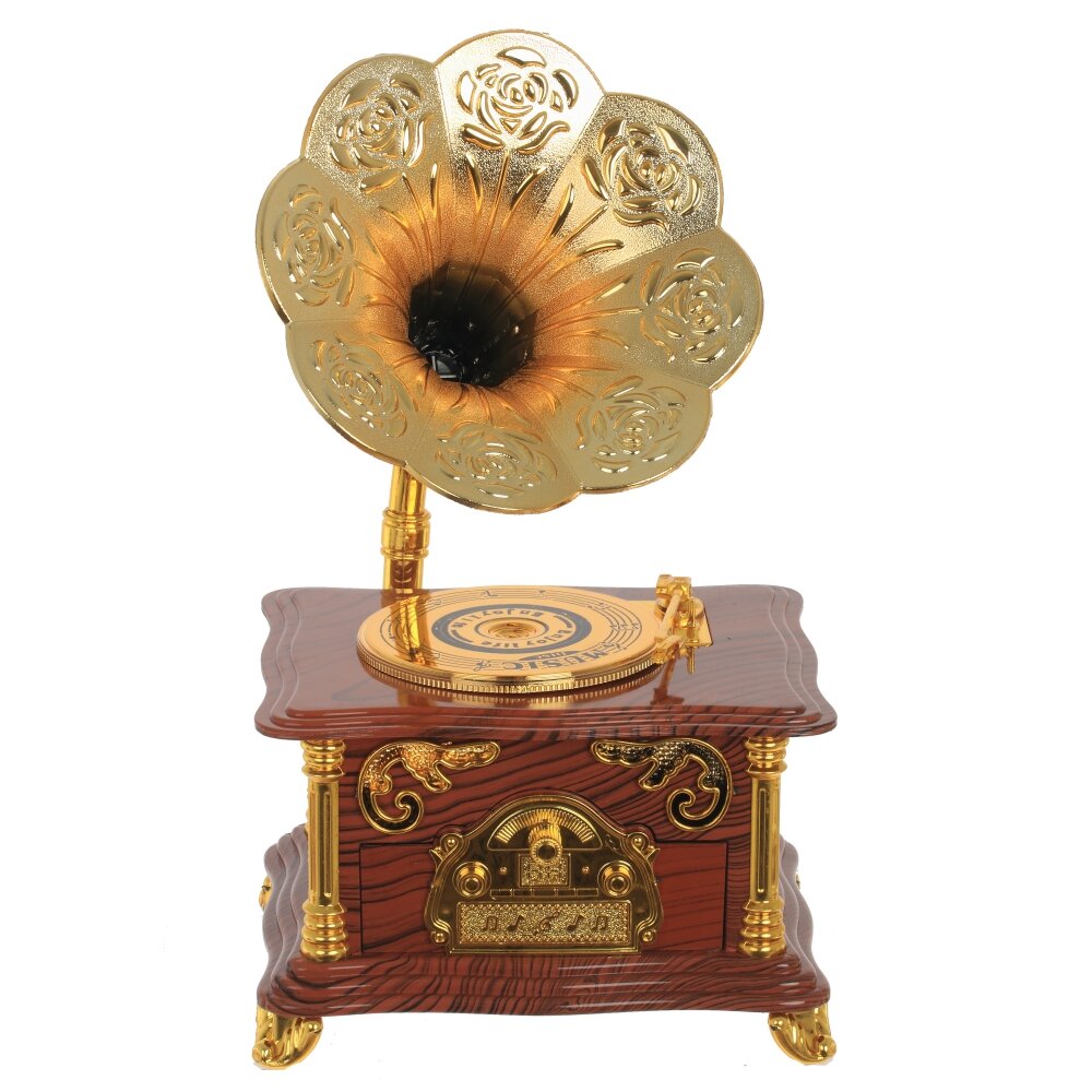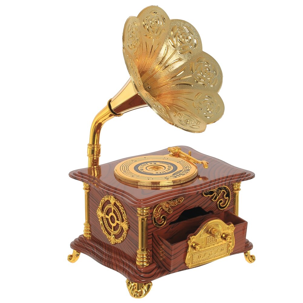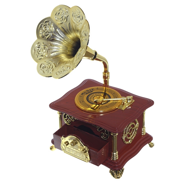 Если вы любитель музыки, то эта музыкальная шкатулка для вас!. Оригинальный подарок - небольшая музыкальная модель Граммофона с выдвижным ящичком. Выполнена из полимерных материалов. Работает от заводного ключа.