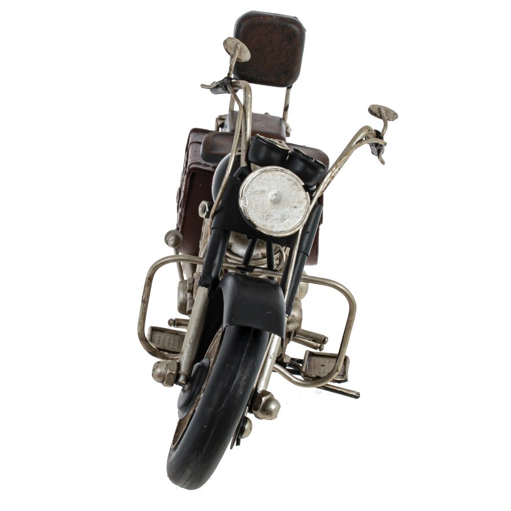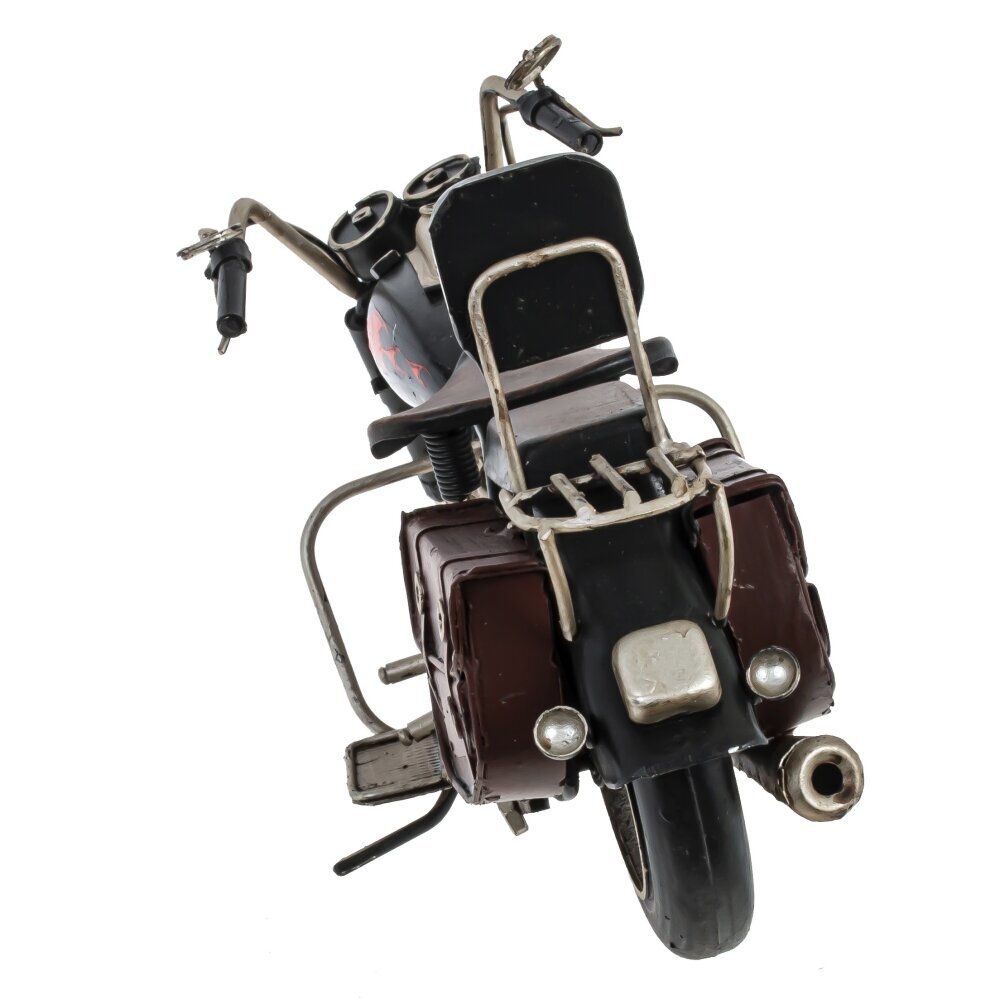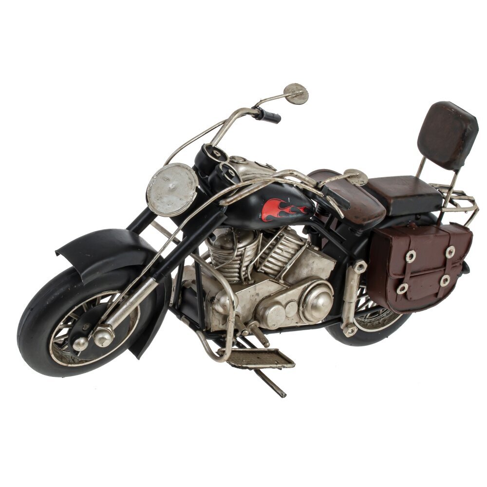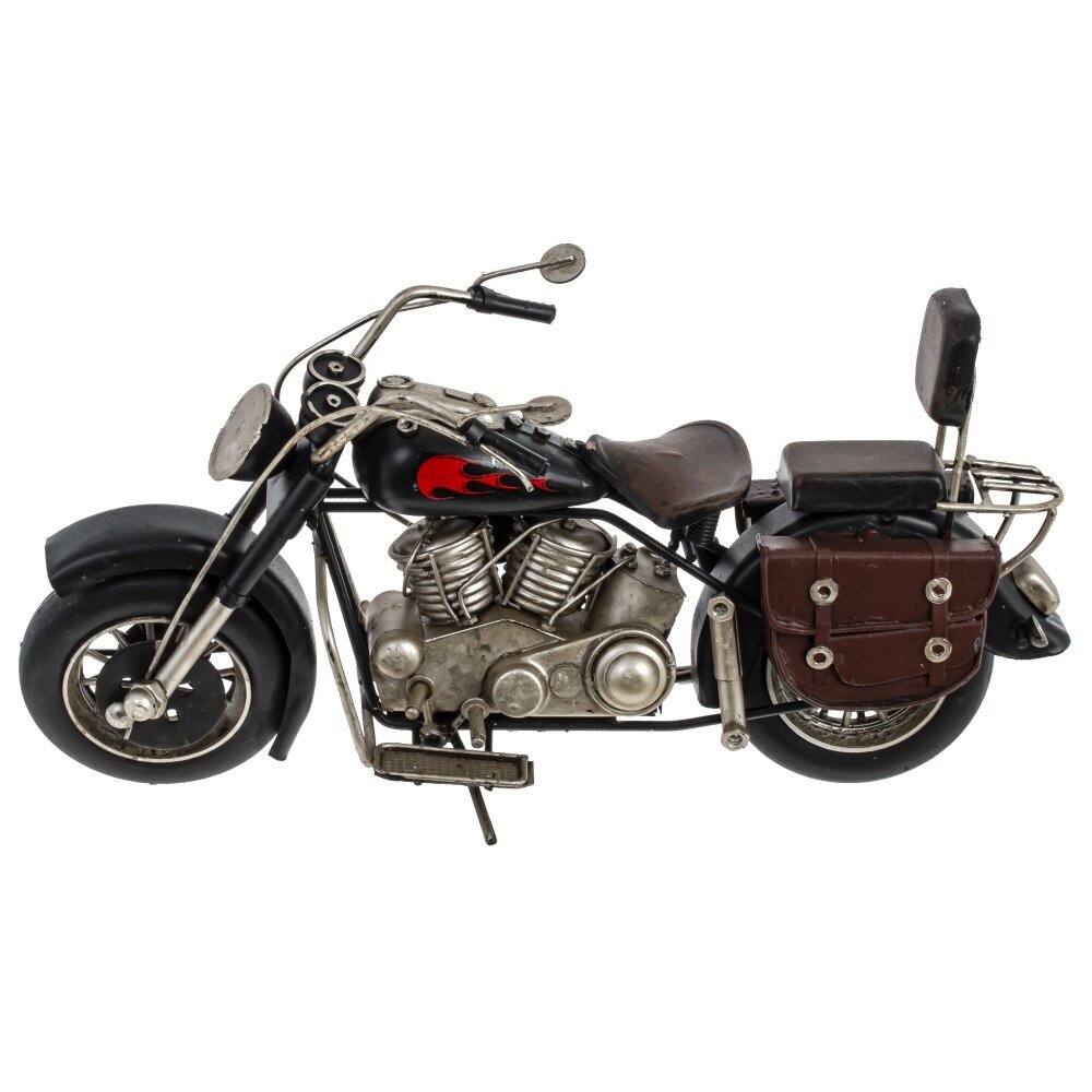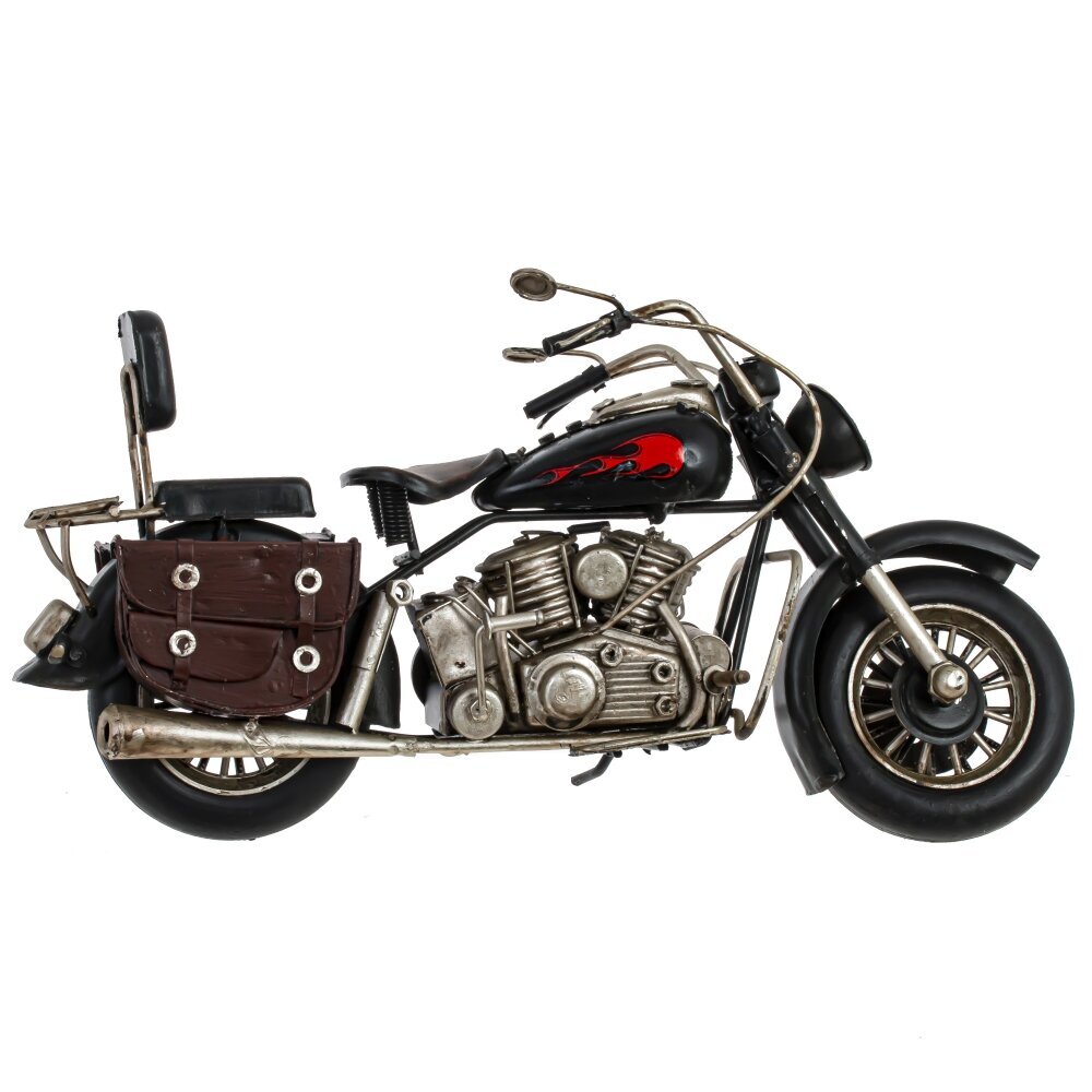 Декоративное изделие «Мотоцикл» – стильная металлическая миниатюра в ретро?стиле, которая станет ярким акцентом в любом интерьере. Фигурка выполнена с вниманием к деталям: проработан двигатель, руль, спицы колёс, имитация кожаных кофров и спинки сиденья. Чёрный корпус с красным пламенем подчёркивает динамичный характер модели и ассоциируется с духом свободы и дальних дорог. Металлическая конструкция прочна и устойчива, подходит для размещения на полке, рабочем столе, в витрине или в комнате мотолюбителя. Отличный подарок для коллекционеров, ценителей байков и оригинальных интерьерных аксессуаров.