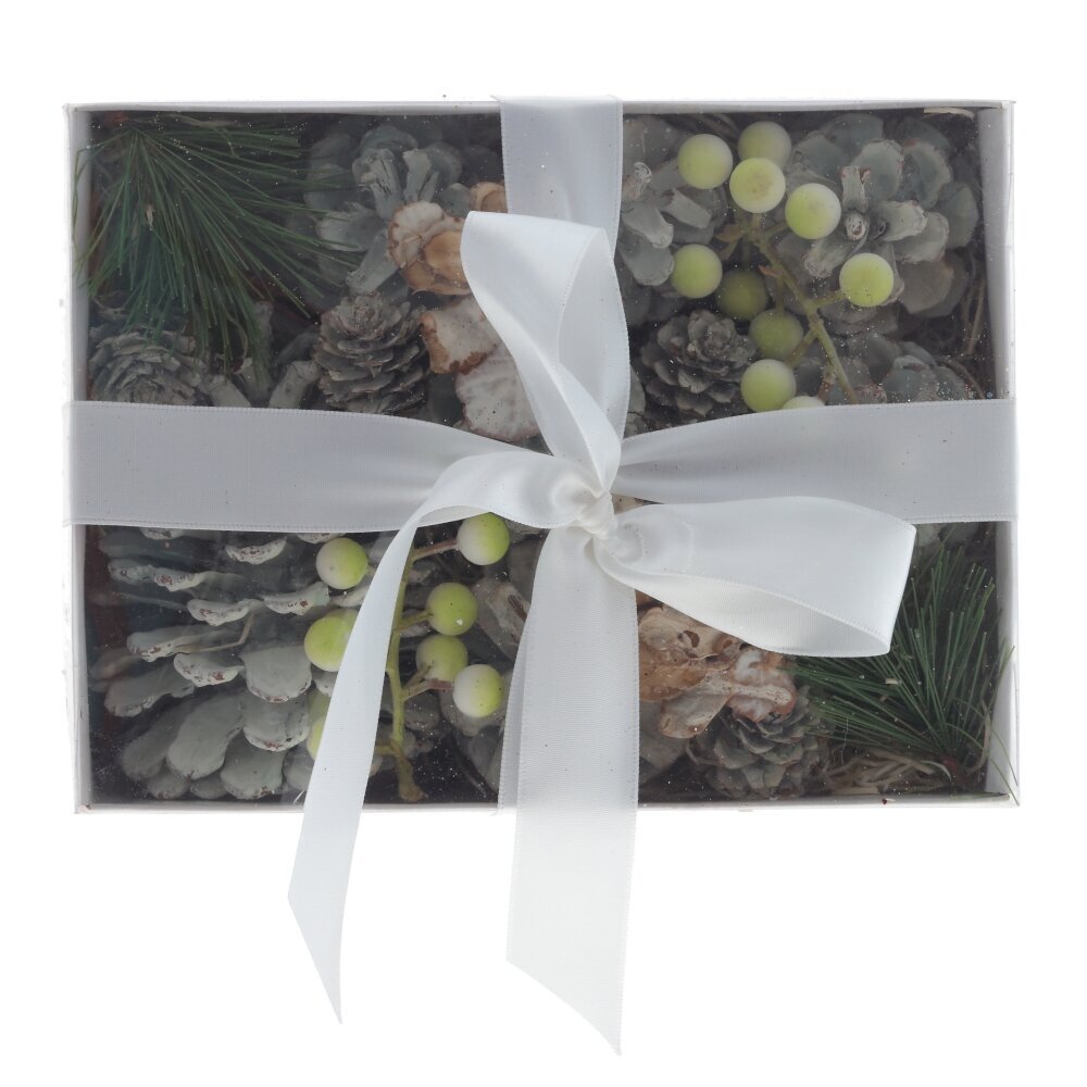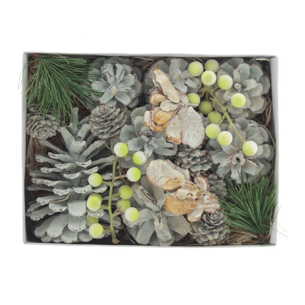 Набор из украшений для новогодней композиции, а так же оформления подарков. Состоит из натуральных шишек, искусственных веток и ягод будет дарить праздничное настроение в новогодние праздники.