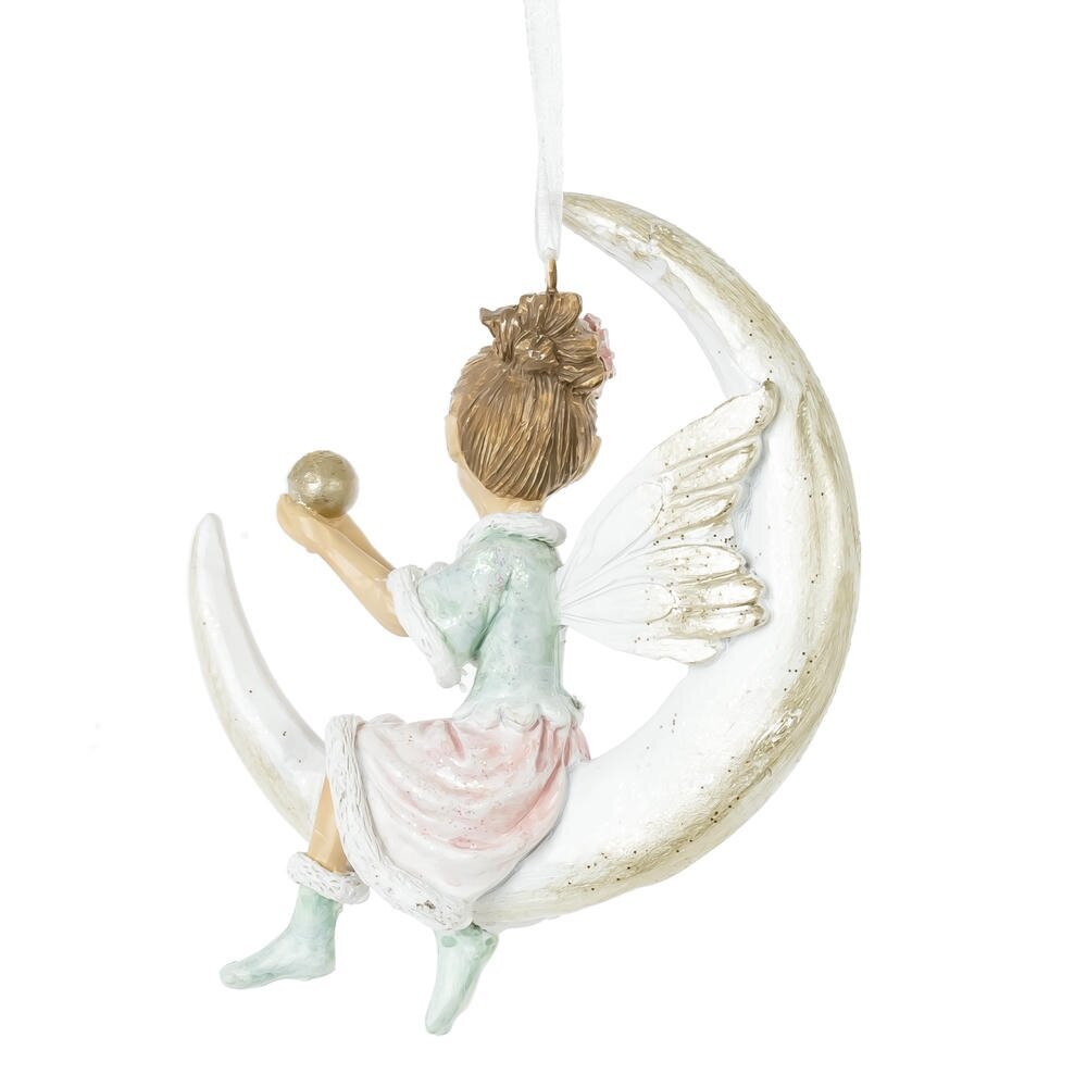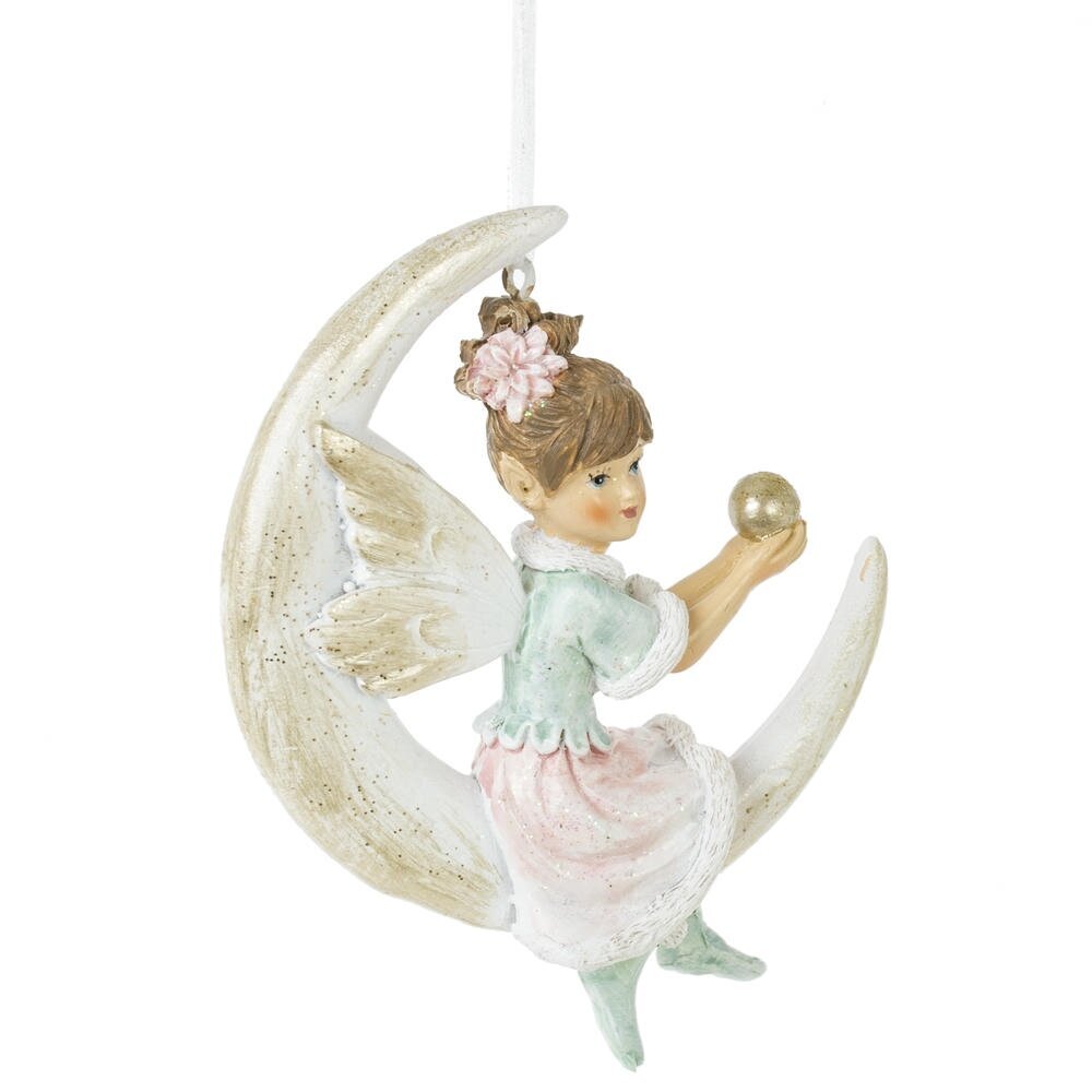 Декоративное подвесное изделие "Фея" — это изысканное новогоднее украшение из полистоуна, представляющее собой девочку-фею, уютно устроившуюся на полумесяце. В ее руках блестящий золотой шар, излучающий теплый свет. Выполненное в нежных пастельных тонах, изделие поражает вниманием к деталям: от аккуратной прически до милых туфельек. Эта фея станет волшебным акцентом в вашем праздничном декоре, наполняя атмосферу сказкой и уютом.