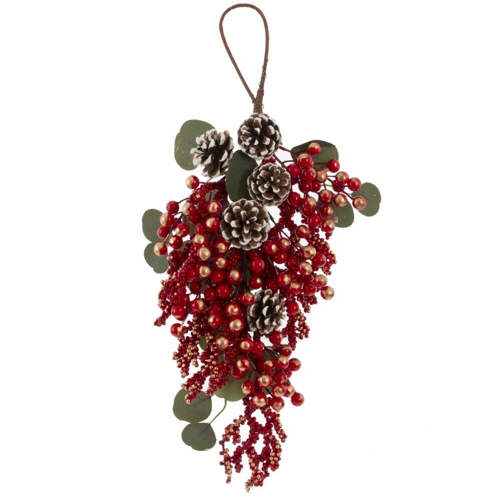 Это декоративное изделие в виде ветки станет оригинальным акцентом в интерьере или праздничном оформлении. Ветка искусно декорирована реалистичными красными ягодами, придающими ей яркий и нарядный вид. Благодаря подвесу в виде петли, ветку легко разместить на двери, стене, каминной полке или использовать как часть новогодней композиции. Такой элемент декора добавит уюта и теплоты в любое пространство, создавая атмосферу праздника. Материалы изделия устойчивы к выцветанию и деформации, что делает его многоразовым и долговечным.