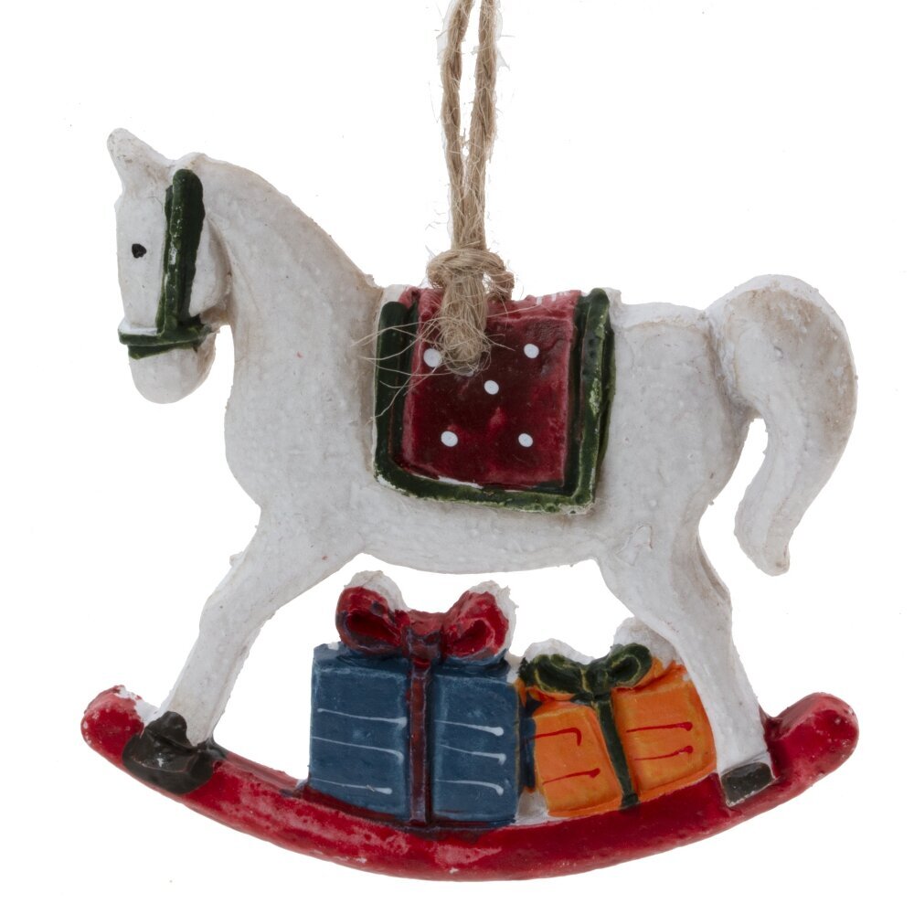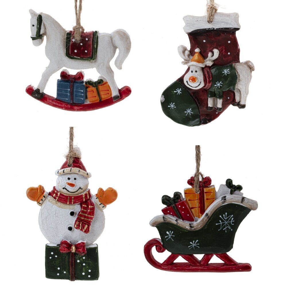 Декоративное подвесное украшение из полимерной глины станет отличным акцентом в новогоднем интерьере. Оно предлагается в четырёх уникальных вариантах: лошадка-качалка, носок для подарков с изображением оленя, снеговик и сани. Каждое украшение имеет свой особенный и неповторимый стиль. Изделие удобно подвешивается благодаря джутовой петельке, что делает его великолепным дополнением к праздничному декору.