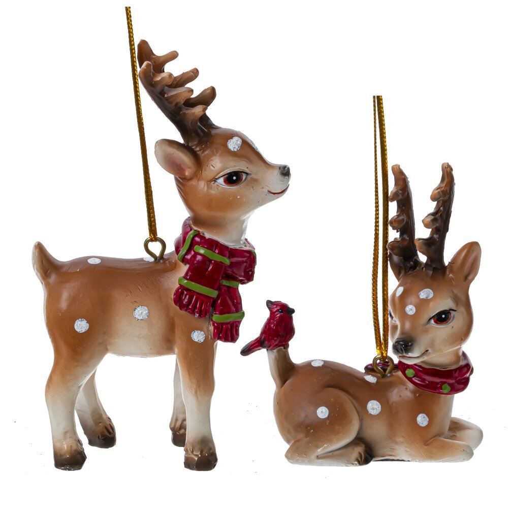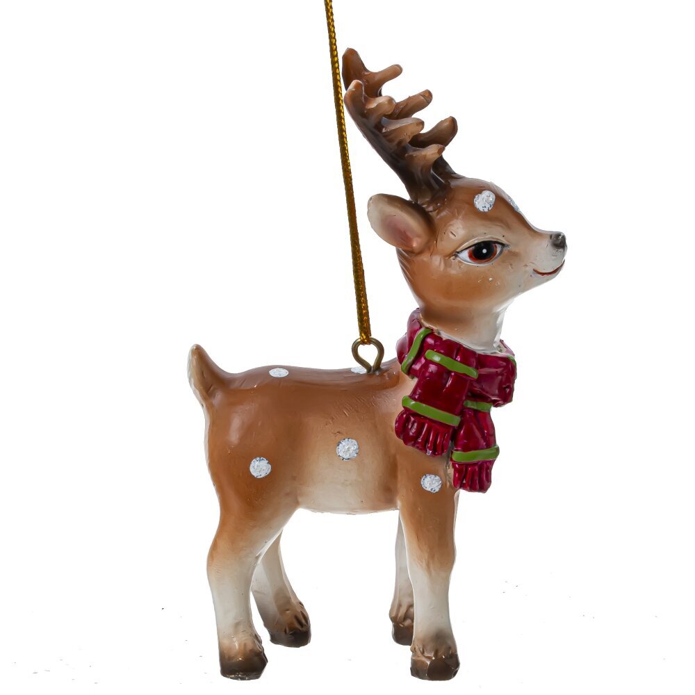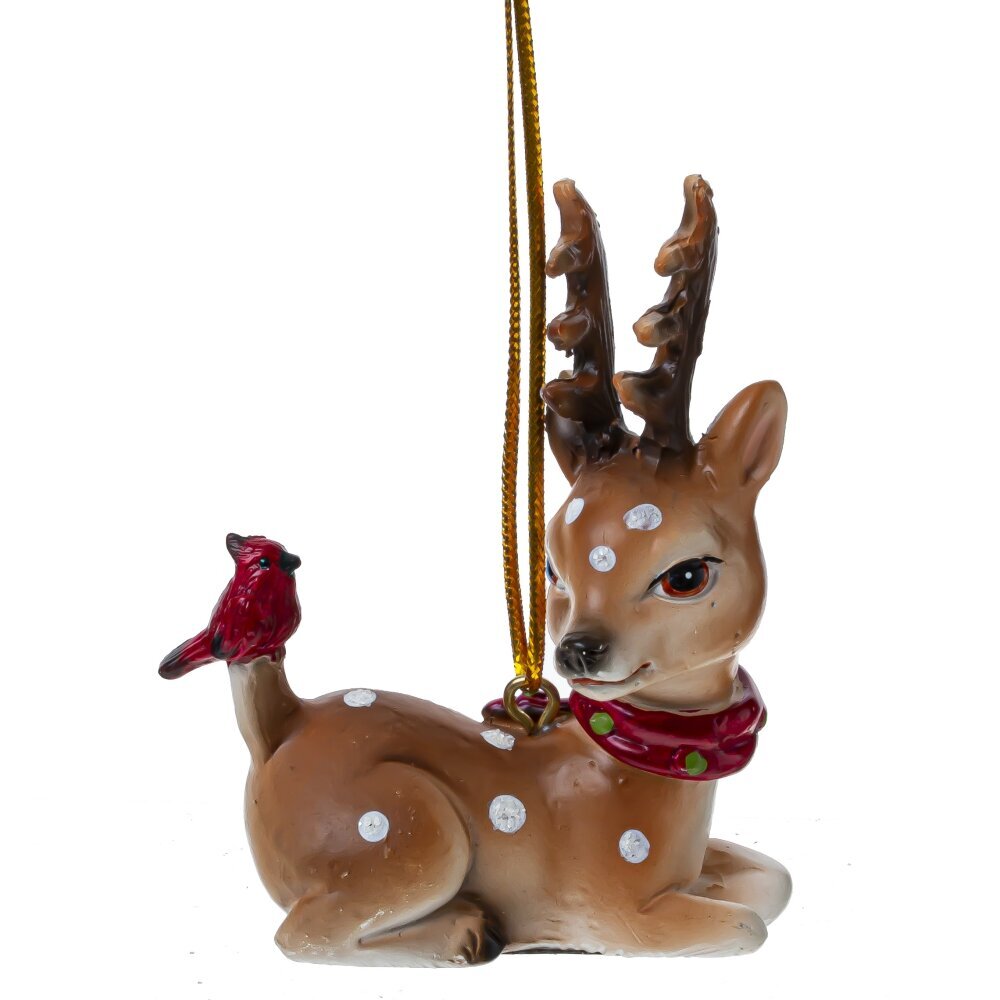 Декоративная фигурка-подвеска "Олень" из полистоуна — это миниатюрный сувенир, который привносит атмосферу тепла и уюта. Представлена в двух вариантах: одна фигурка изображает милого олененка в шарфике с крупными, выразительными глазками и изящными рогами. Второй олень уютно прилег, смотря на небольшую красную птичку на спине. Эти новогодние украшения станут замечательным подарком для близких и украсят любой интерьер, вызывая приятные эмоции и создавая праздничное настроение. Цена указана за одно изделие.