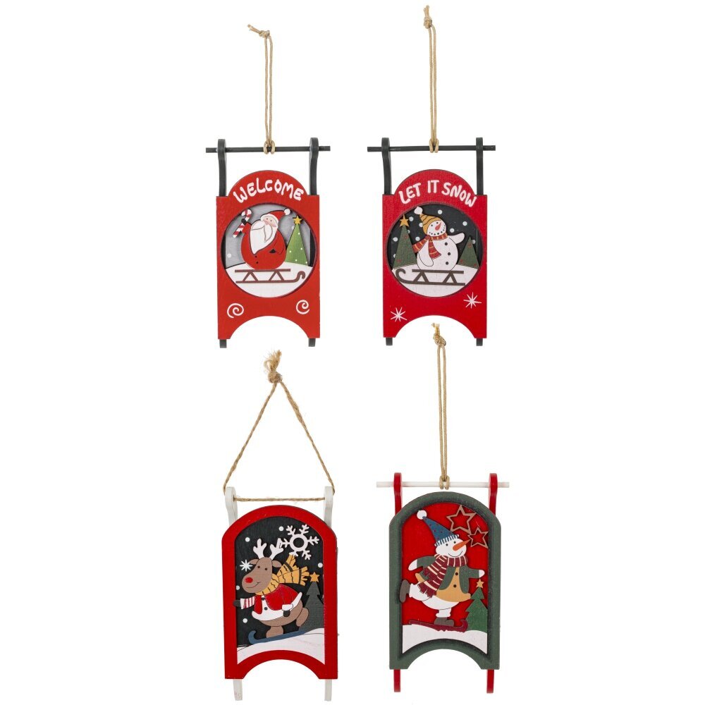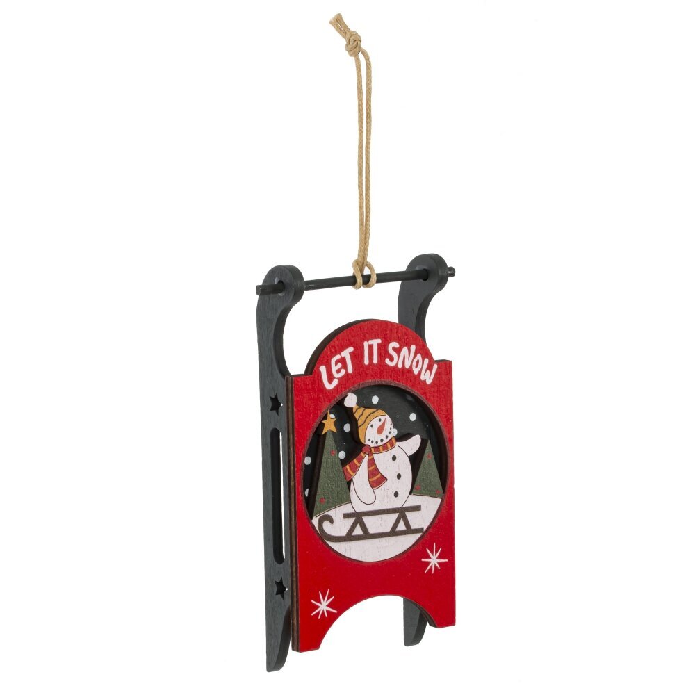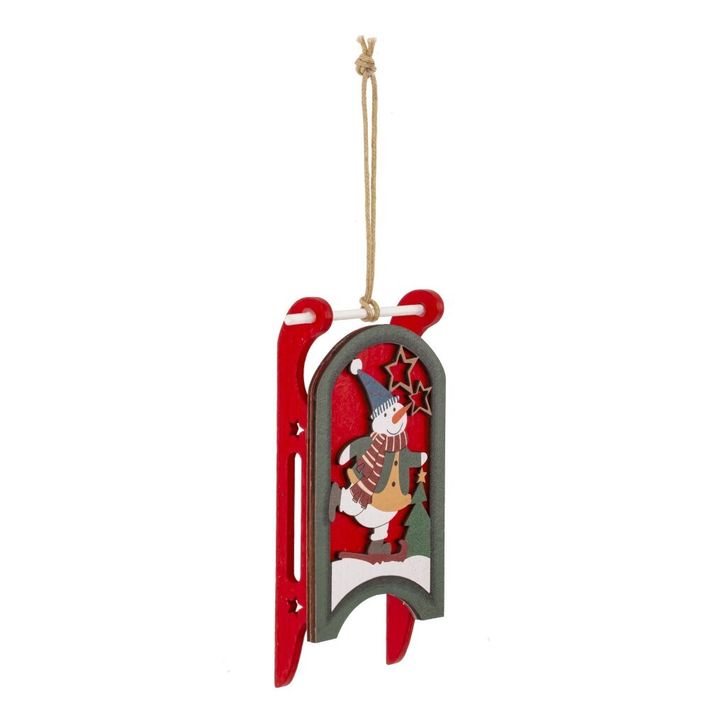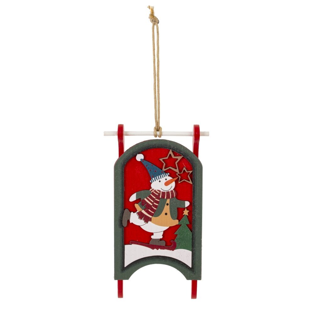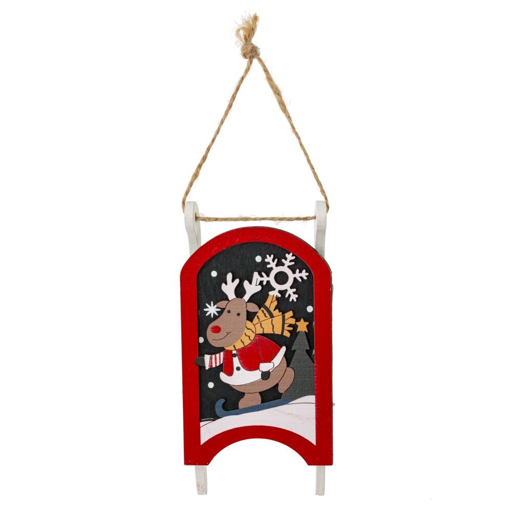 Декоративное подвесное изделие в виде саней с новогодним орнаментом — это стильный и атмосферный элемент праздничного декора, выполненный в традиционных рождественских цветах: красном, зелёном и белом. Компактные и лёгкие, они оснащены петелькой для подвешивания и идеально подойдут для размещения на ёлке, в гирлянде или в новогодней композиции. Такое украшение символизирует волшебство, подарки и зимнюю сказку, создавая тёплую атмосферу праздника в доме.