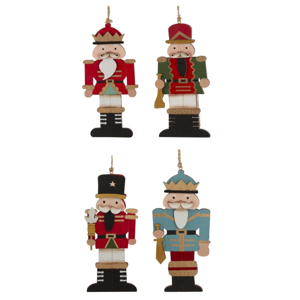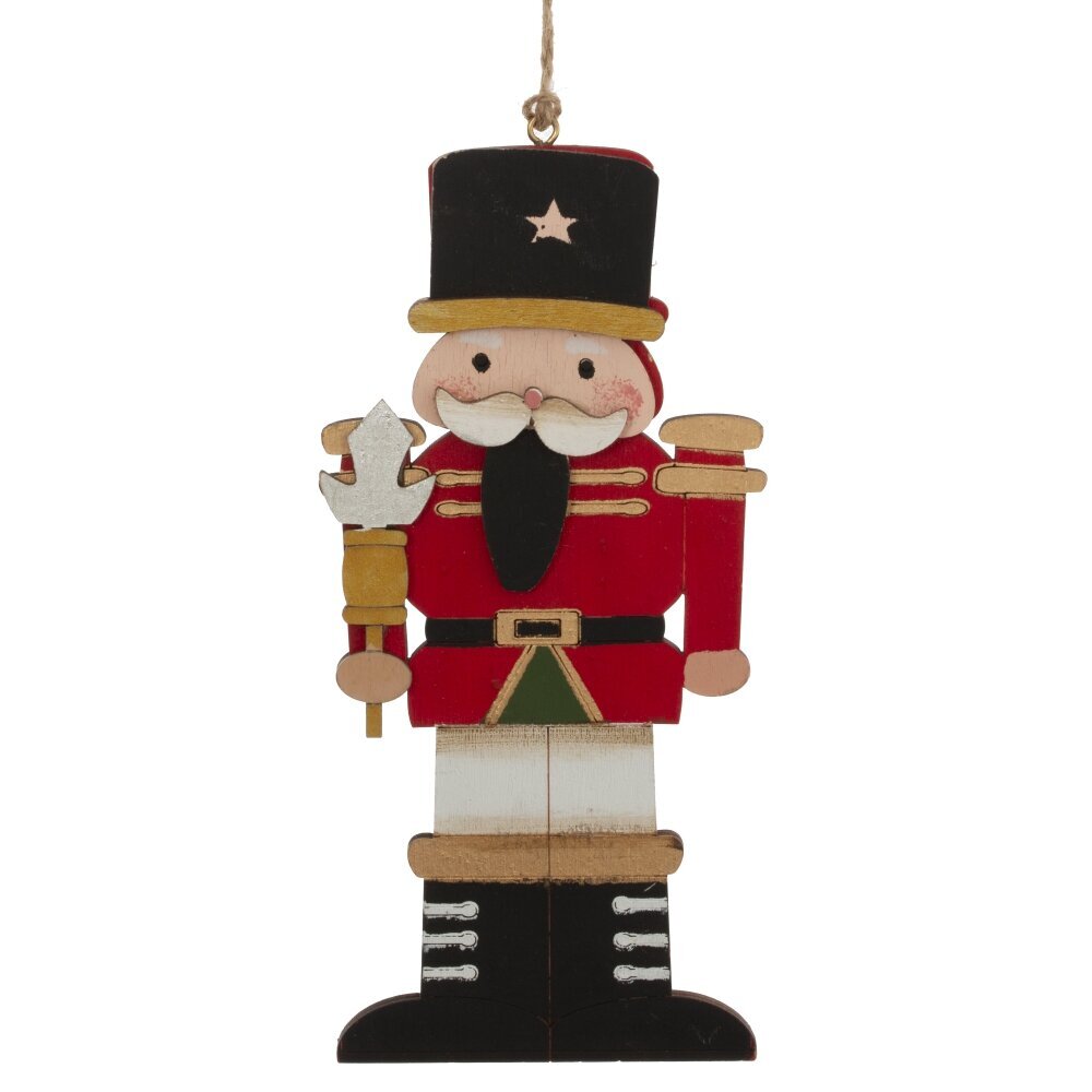 Декоративное подвесное изделие "Щелкунчик", 4в. Прекрасное украшение для новогодней елки. Изготовлено из дерева, точно повторяет классическую сказку "Щелкунчик". Это отличное решение для традиционного новогоднего декора, которое добавит сказочный блеск вашей елке. Создайте незабываемую атмосферу праздника с этим элегантным украшением. Подходит для тех, кто любит традиционные новогодние образы. Идеально дополняет новогодний интерьер, создавая теплую и праздничную обстановку. Добавьте немного сказки и волшебства в свой дом!