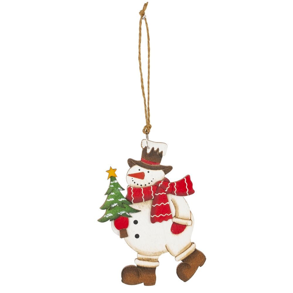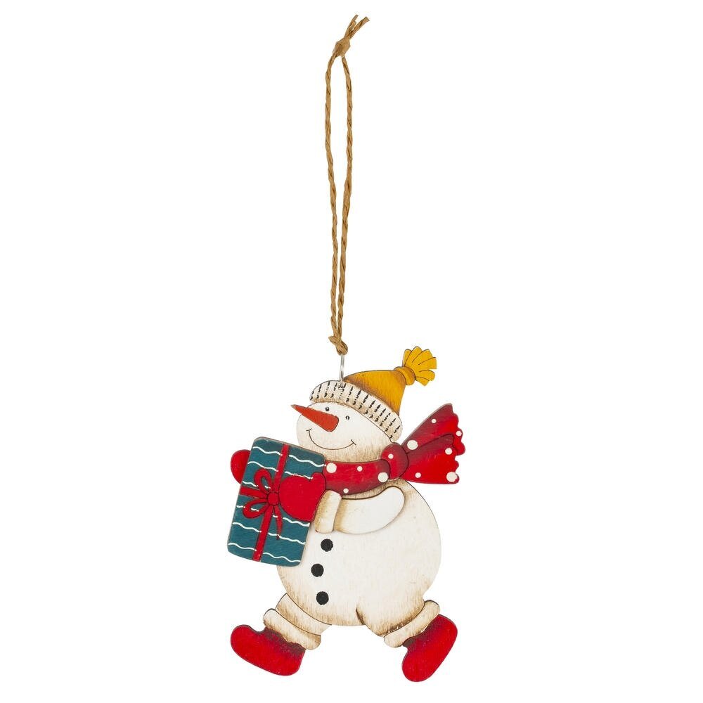Декоративное подвесное изделие из дерева в виде Снеговика станет ярким и запоминающимся элементом новогоднего украшения. Фигурка выполнена в традиционных новогодних цветах — традиционном для Изделие снабжено удобной петелькой для подвешивания, что позволяет разместить его на ёлке, венке, гирлянде или в новогодней композиции. Благодаря своему яркому оформлению и праздничному дизайну,данное украшение прекрасно впишется в любой интерьер и наполнит дом атмосферой уюта, тепла и ожидания чуда.