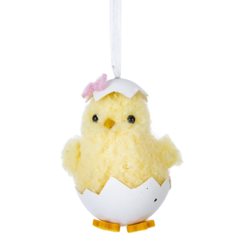 Подвесное декоративное изделие «Цыплёнок» станет очаровательным акцентом пасхального оформления дома. Милый пушистый цыплёнок из текстильных материалов выглядывает из расколотой скорлупы яйца из полимерного материала, создавая ощущение весеннего чуда и обновления. Верхняя часть скорлупки украшена нежным бантиком, а к ней закреплена аккуратная подвесная ленточка, благодаря которой фигурку удобно разместить на пасхальном дереве, дверной ручке, люстре или в композиции с веточками и цветами. Лёгкое и безопасное украшение подойдёт для оформления детской, гостиной, офиса, а также для тематической фотосъёмки и праздничных подарочных наборов. Представлено в трех вариантах.