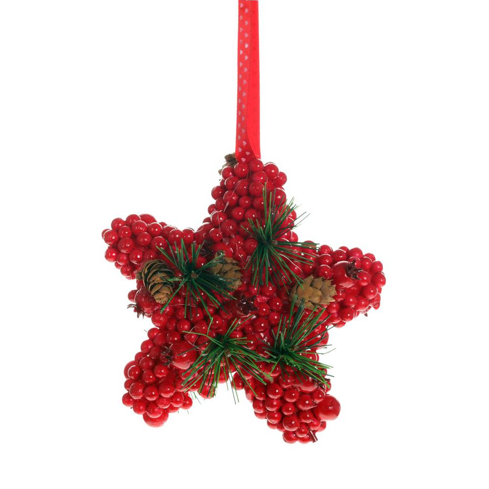 Оригинальное подвесное украшение, выполненное в виде звезды из красных ягод. Преобразит любое помещение и наполнит его духом приближающегося Нового года и Рождества!