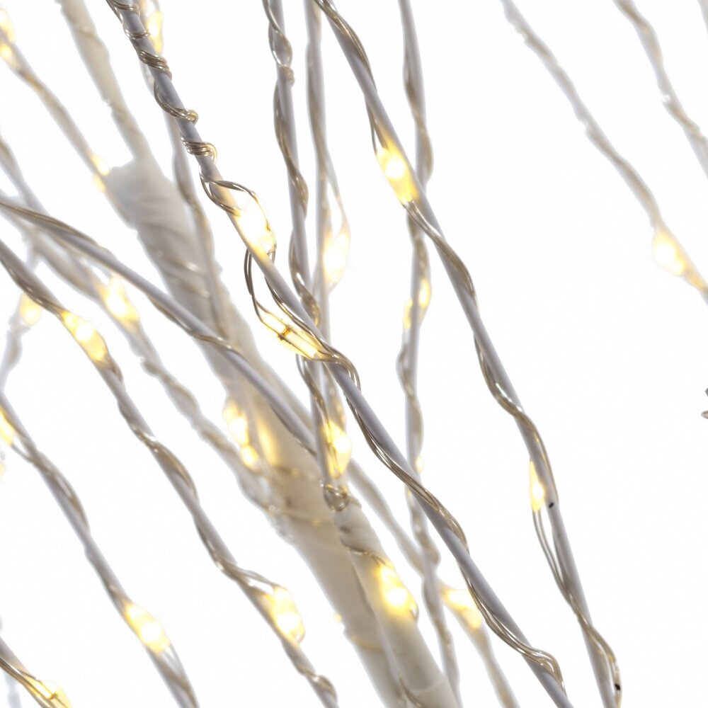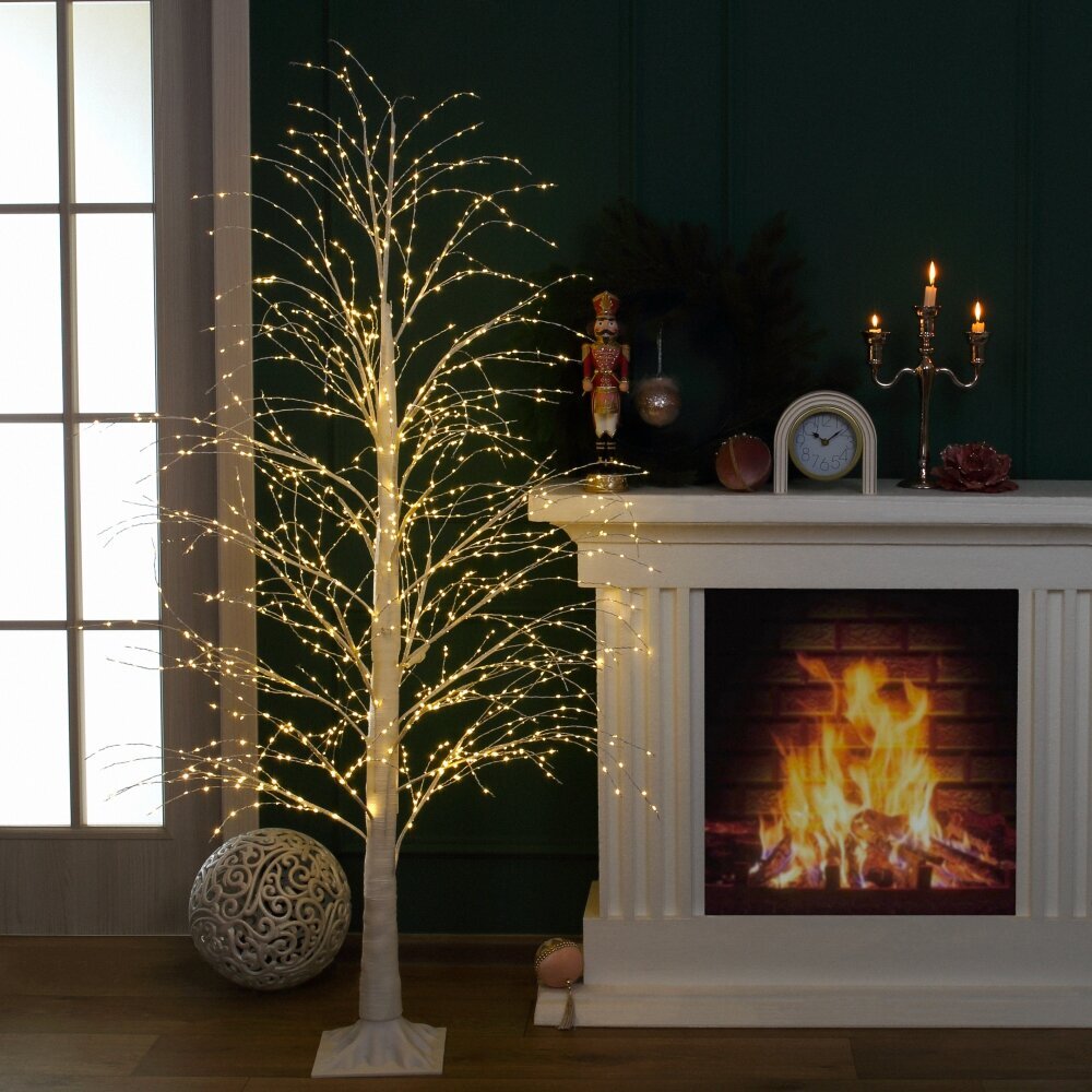 Декоративное изделие с подсветкой «Дерево» — стильный акцент для интерьера, создающий мягкую атмосферу уюта и праздника. Изящные ветви, усыпанные множеством теплых огоньков, образуют светящуюся крону. Ствол и ветви выполнены из полимерных материалов и усилены металлическим каркасом, что обеспечивает надежность и долговечность. Белый цвет придает изделию чистый, современный вид и легко сочетается со сканди, минимализмом и классикой. Устойчивая база позволяет безопасно разместить дерево у камина, у окна, в холле или витрине. Мягкая подсветка идеальна для вечеров, фотозон, праздничного декора и повседневной атмосферы спокойствия. Гибкие ветви можно аккуратно расправить, придавая кроне желаемую форму. Размер: L95 W95 H180 см. Материалы: полимерные материалы, металл. Цвет: белый. Ветки: 200 шт. Светодиоды: 1300 шт. Свет: белый теплый (постоянное свечение). Длина шнура: 5 м. Степень защиты (IP): IP 44. Тип питания: от сети.