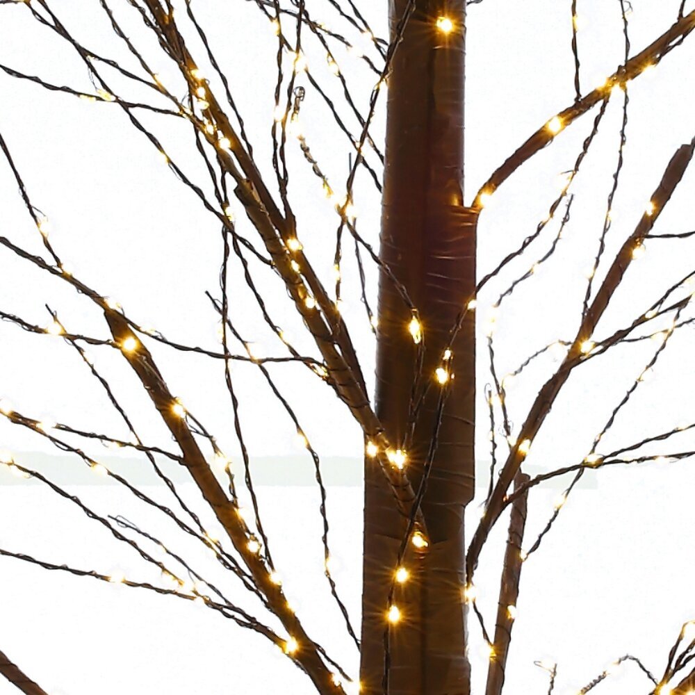 Декоративное изделие с подсветкой «Дерево» — изящный акцент для интерьера. Основа и ветви выполнены из полимерных материалов и металла, цвет ствола — коричневый. Тонкие веточки усыпаны множеством тёплых LED-огоньков, создающих мягкое золотистое сияние и атмосферу уюта. Устойчивая металлическая опора гарантирует надёжность, гибкие ветви легко расправляются и держат форму. Энергоэффективная и безопасная подсветка подходит для ежедневного декора и праздничных композиций у камина, в гостиной, спальне или витрине. Простая сборка, удобное хранение и стильный вид круглый год. Размер L95 ? W95 ? H150 см. Материалы: полимерные материалы, металл. Цвет: коричневый. Ветки: 144 шт. Светодиоды: 900 шт. Свет: белый теплый (постоянное свечение). Длина шнура: 5 м. Степень защиты (IP): IP 44. Тип питания: от сети.