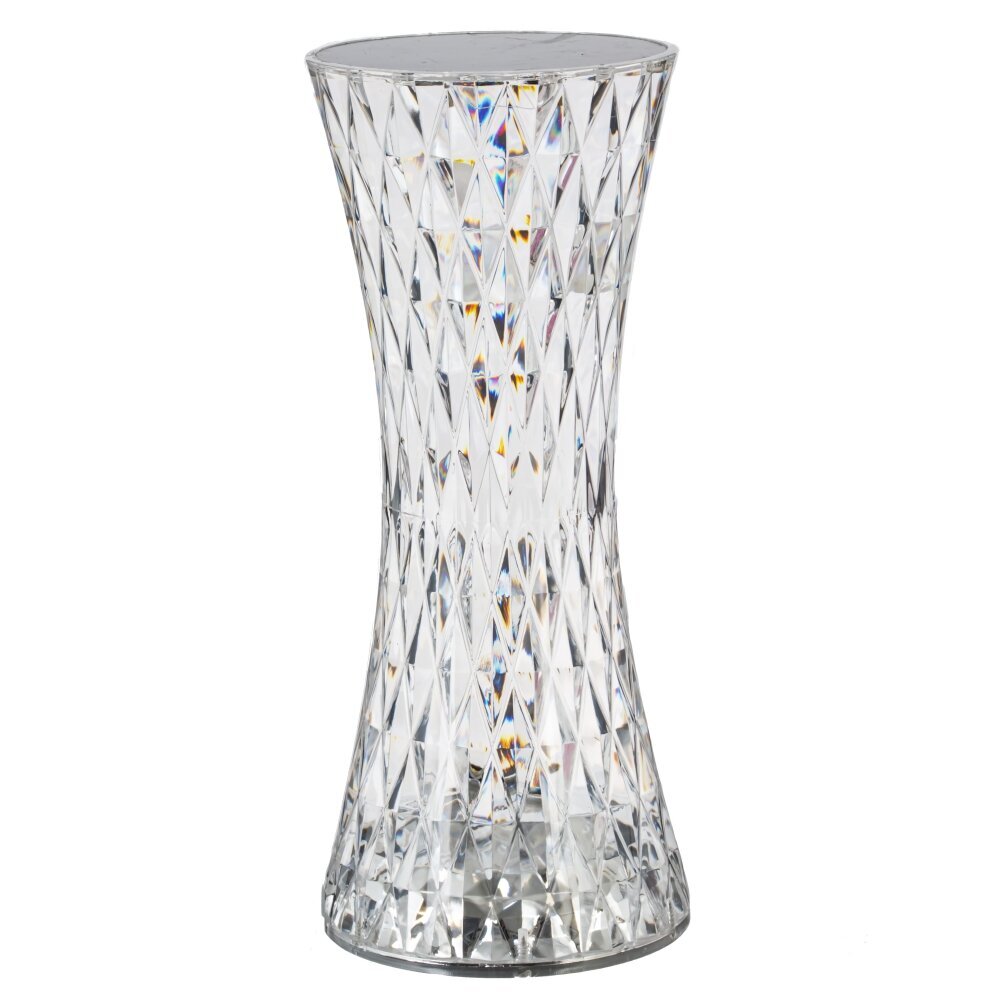 Эта настольная лампа в форме башни добавит элегантности любой комнате. Ее серебристая металлическая верхняя часть и основание делают всю лампу изысканной. Прозрачный абажур с оригинальной текстурой изготовлен из акрила, который обеспечивает мягкий ровный свет. Простым прикосновением к верхней части вы можете легко включать и выключать лампу, а также переключаться между 3 различными цветовыми температурами (теплый белый для сна, естественный белый для чтения и холодный белый для работы). Долгое прикосновение для плавной регулировки яркости по вашему вкусу. Металлическое основание помогает лампе устойчиво стоять. Ее компактный размер и портативная конструкция позволяют легко перемещать ее и использовать в любой обстановке. Беспроводная настольная лампа работает от перезаряжаемого аккумулятора, и вы можете брать ее с собой куда угодно. В комплект входит кабель USB для зарядки. Подходит для использования в спальне, столовой, на террасе, ресторане и т. д.