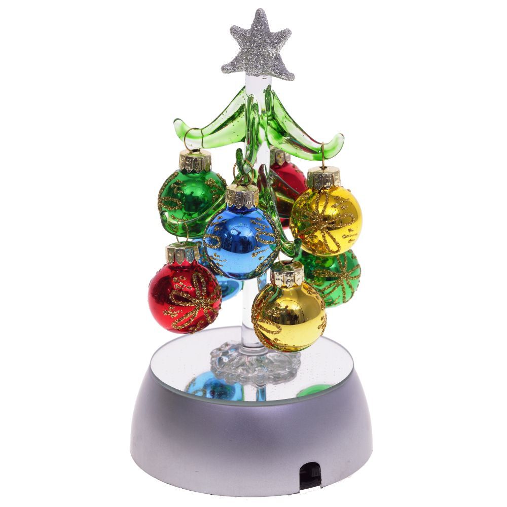 Новогодняя ёлка – главный символ Нового года и Рождества, ей всегда найдётся место в доме. Небольшая декоративная стеклянная ёлочка с подсветкой и со съемными шариками способна подарить настроение праздника и волшебства всем окружающим. Изделие представлено в четырех вариантах. Работает от трех батареек АА (не прилагаются).