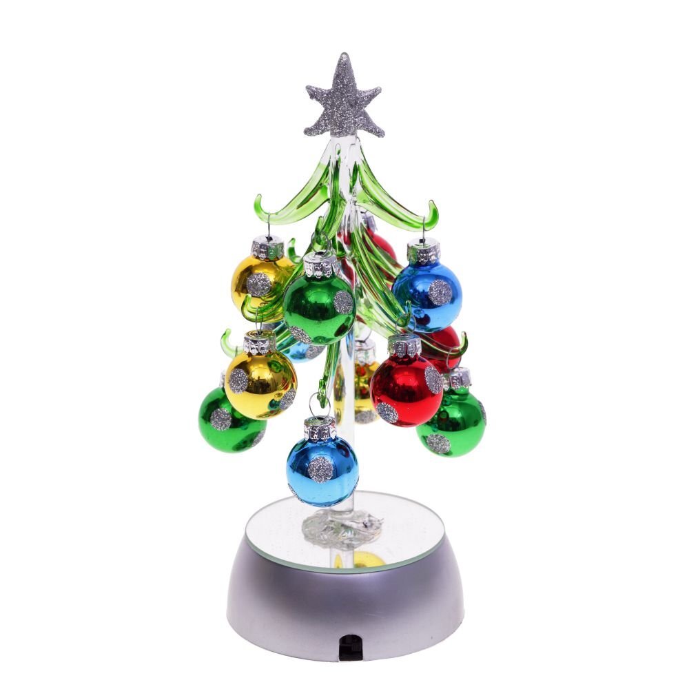 Новогодняя ёлка – главный символ Нового года и Рождества, ей всегда найдётся место в доме. Небольшая декоративная стеклянная ёлочка с подсветкой и со съемными шариками способна подарить настроение праздника и волшебства всем окружающим. Изделие представлено в четырех вариантах. Работает от трех батареек АА (не прилагаются).