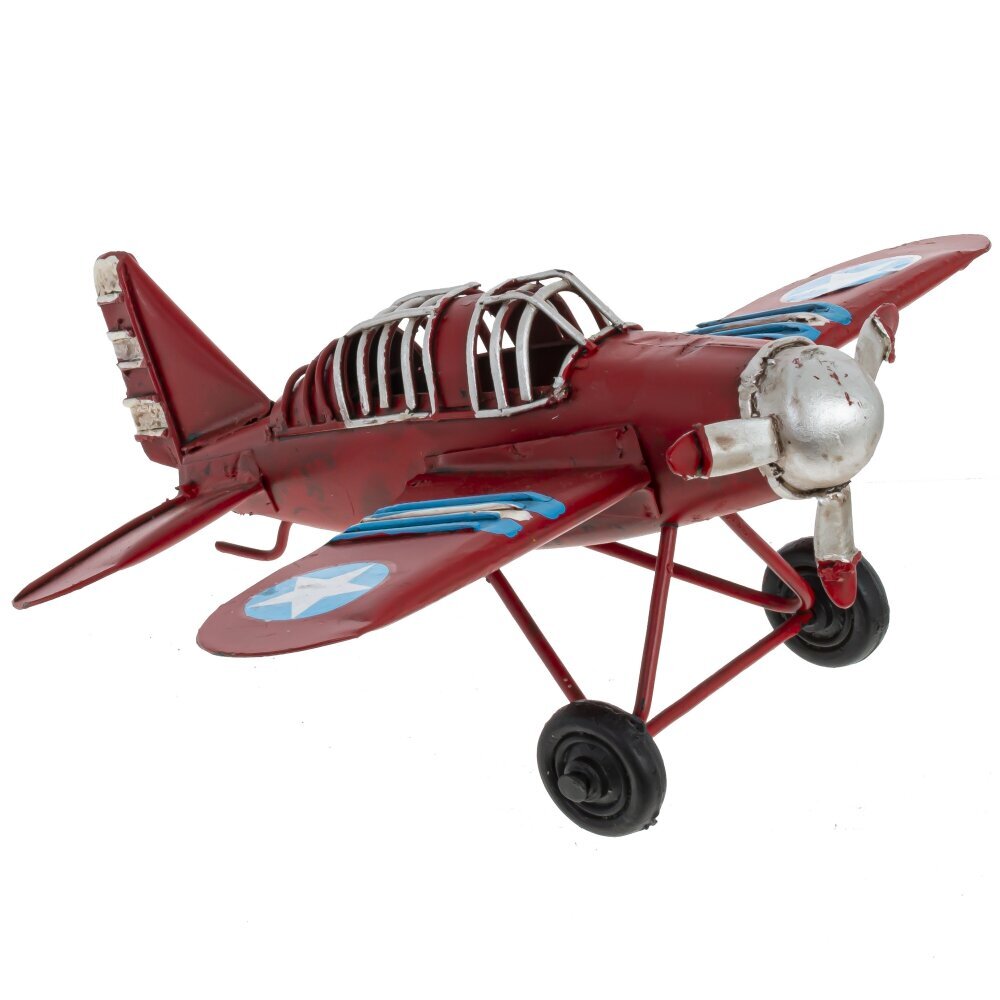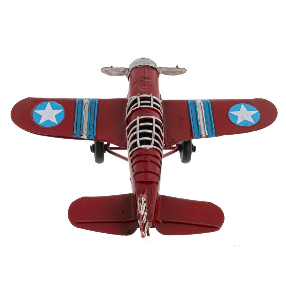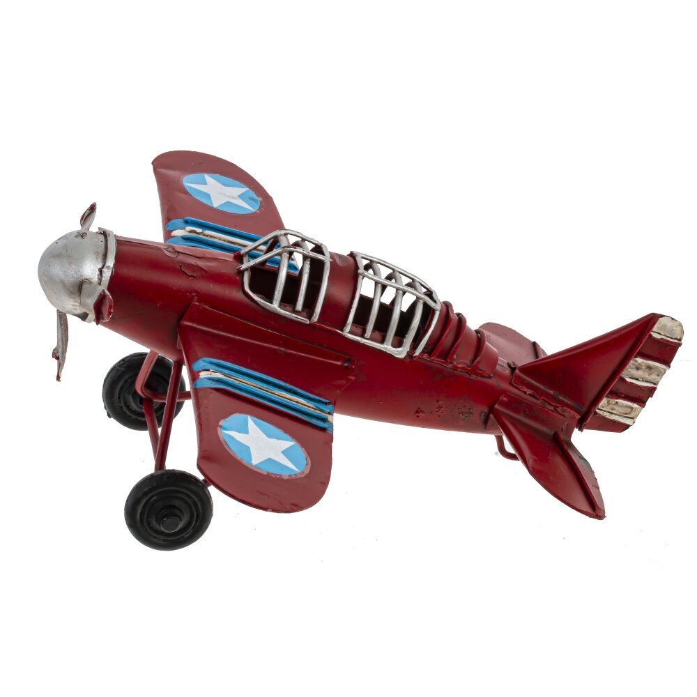 Декоративное изделие «Самолет» — стильный металлический аксессуар для интерьера в винтажном авиа?стиле. Корпус выполнен из металла и окрашен в насыщенный бордовый цвет с контрастными синими вставками и белыми звездочками на крыльях, пропеллер и решётчатая кабина имеют серебристое покрытие. Продуманная детализация шасси, хвостового оперения и корпуса придаёт модели эффект старинного самолёта, создавая атмосферу романтики полётов. Идеально подойдёт для украшения кабинета, гостиной, детской комнаты, витрины магазина или тематического кафе, а также станет оригинальным подарком для коллекционеров и любителей авиации. Металлическая конструкция устойчива и долговечна, не требует особого ухода.