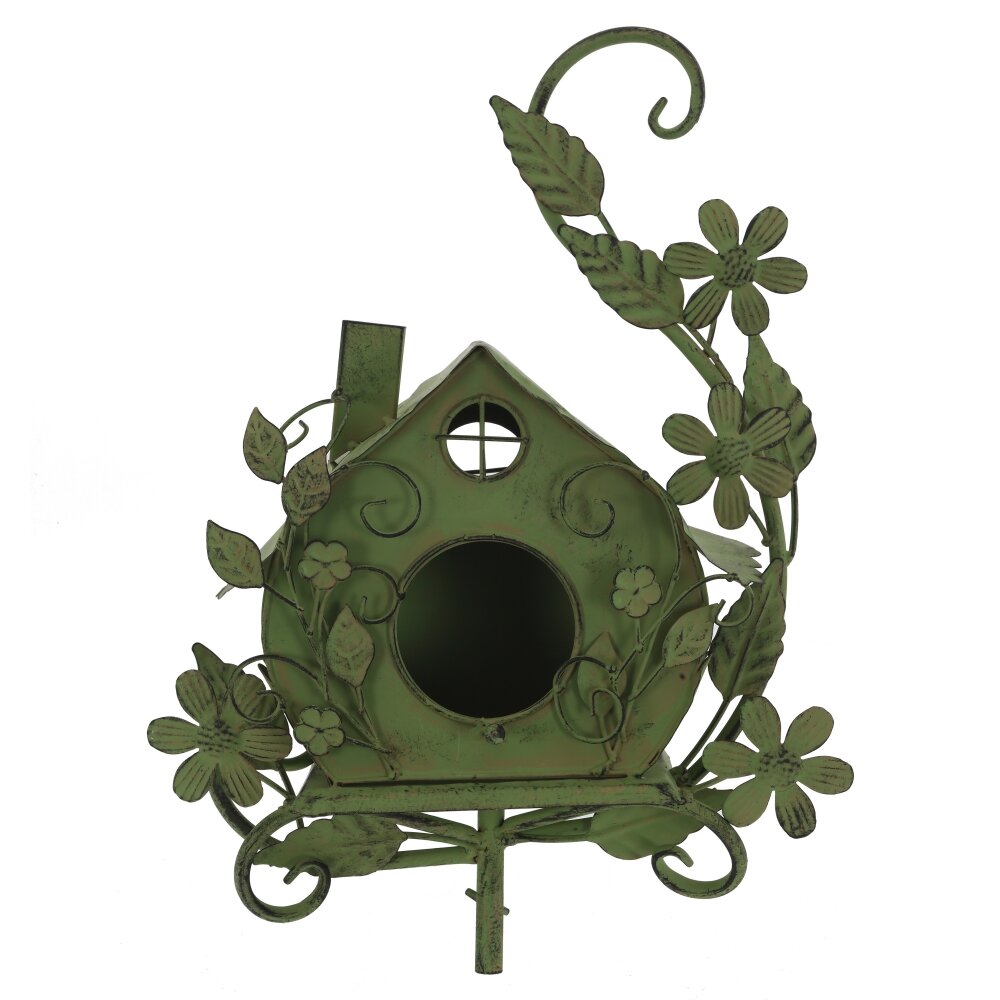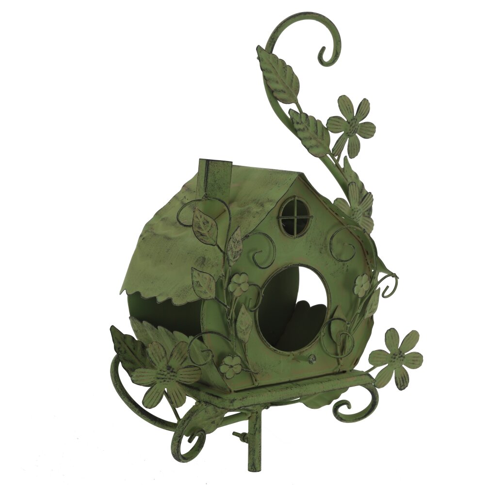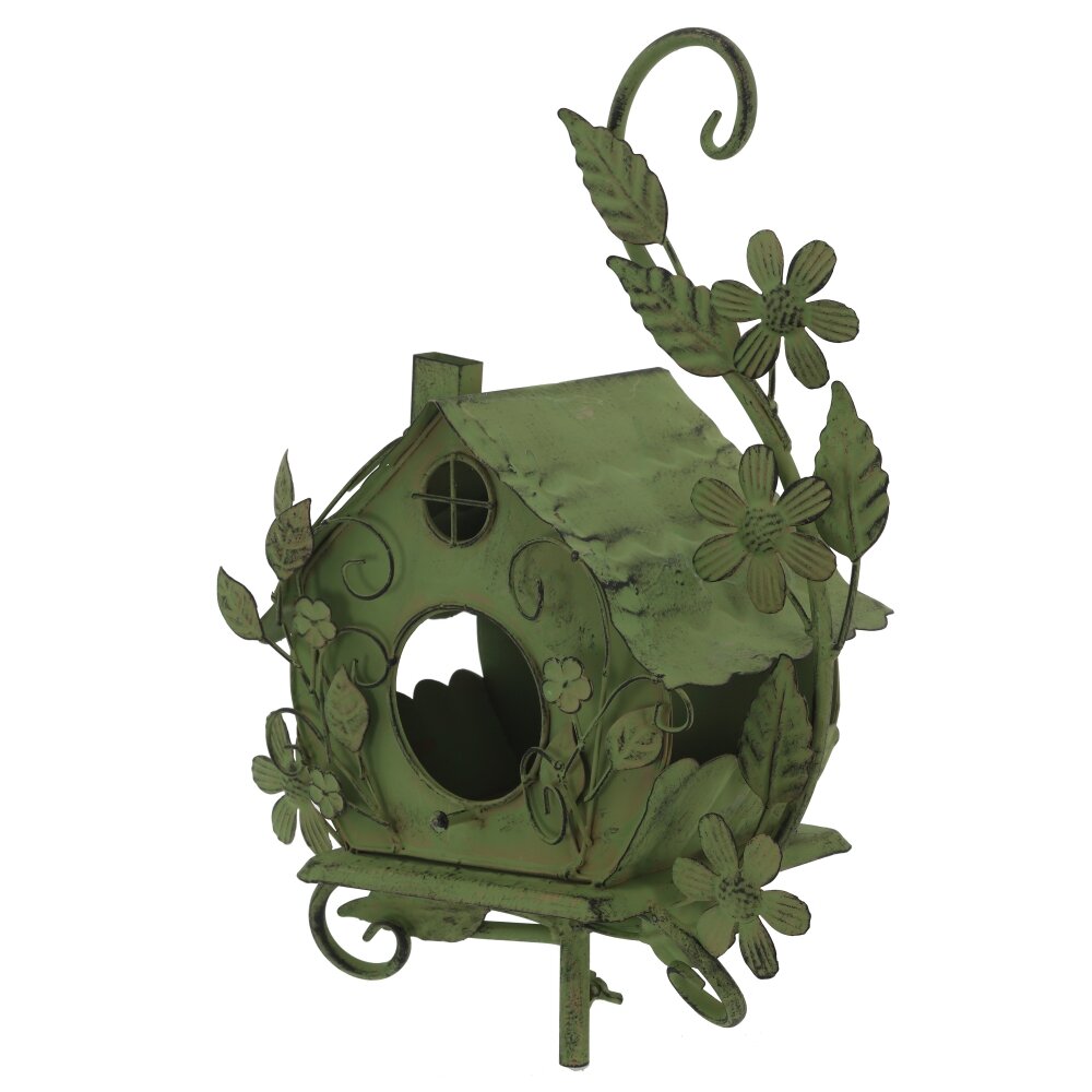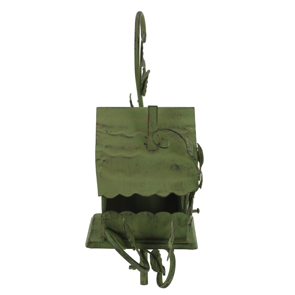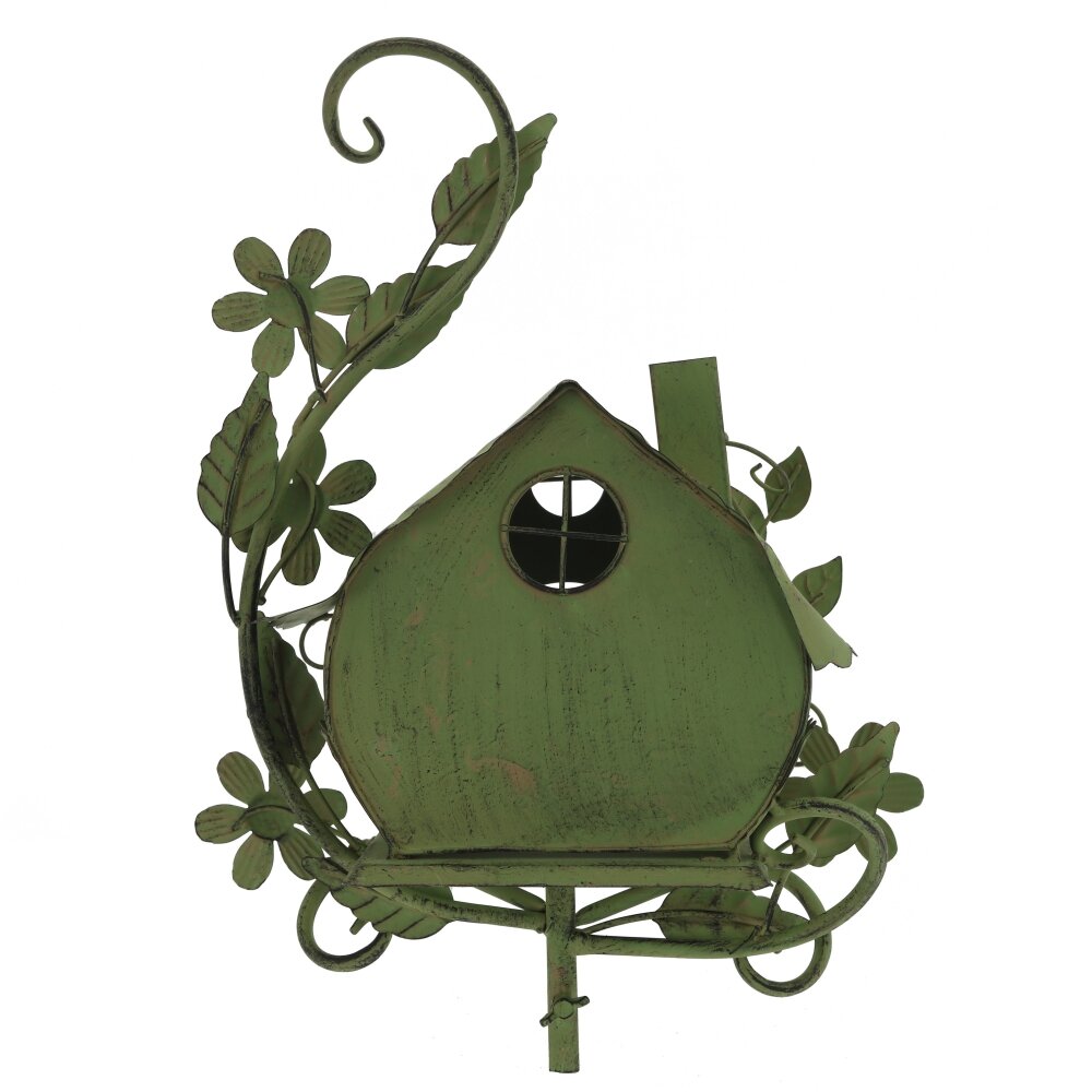 Декоративное изделие «Скворечник» – изящный акцент для сада, террасы или балкона. Металлический домик выполнен в виде миниатюрного скворечника с крышкой, украшенной рельефными листьями и цветами. Нежный зелёный цвет с лёгким эффектом старины подчёркивает винтажный стиль и гармонично сочетается с растениями и уличной мебелью. Фигурные завитки придают конструкции воздушность, а прочный металл обеспечивает устойчивость и долговечность. Изделие можно подвесить или установить на опору, используя как самостоятельное украшение, элемент цветочной композиции или оригинальный подарок любителям садового декора.