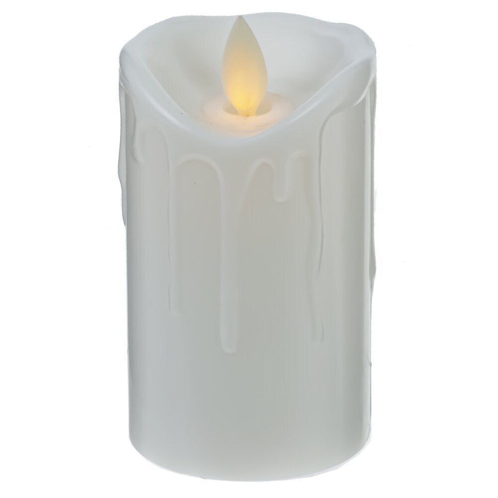 LED-свеча — это уникальное дизайнерское решение, которое идеально дополнит любой интерьер и станет прекрасным атрибутом для торжеств. Эта декоративная свеча создает эффект горящего пламени, используя безопасную технологию, которая не представляет опасности ни для людей, ни для животных. Она сохраняет привлекательность «живого» огня, исключая риск, связанный с настоящим огнем. Цвет свечи белый с эффектом подтекающего воска. Для работы требуется две батарейки AAA (не прилагаются).