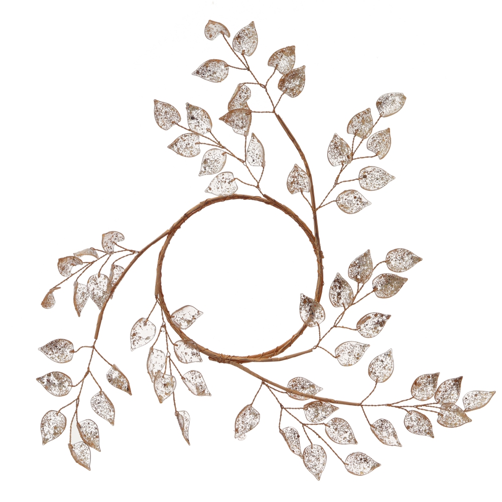Декоративный венок "Венок" с диаметром внутреннего кольца 9 см станет изысканным акцентом в любом интерьере. Этот роскошный венок, выполненный из металла и украшенный нежными полупрозрачными золотыми листьями, создает атмосферу праздника и элегантности. Идеален для декорирования свечей или создания оригинальных композиций. Привнесите праздник в свой дом с этим стильным украшением!