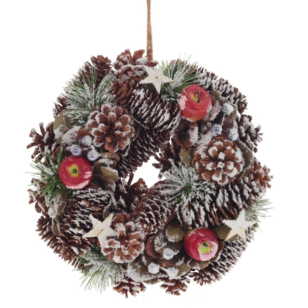 Новогодний декоративный венок с ярким декором из натуральных шишек, ягод, яблок и веточек будет уместен в любом интерьере, создавая уют и праздничное настроение.