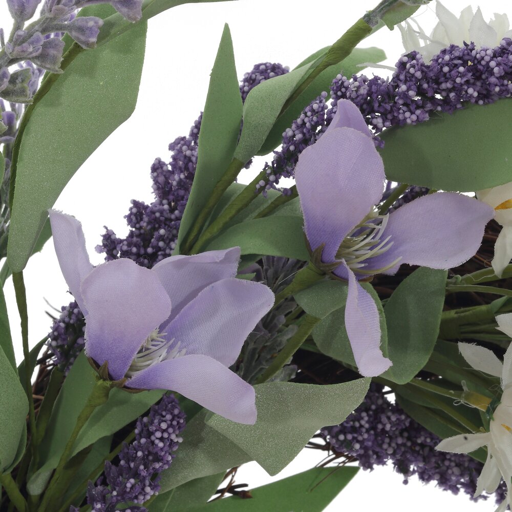 Декоративное изделие «Венок пасхальный» — стильное украшение для дома и праздничного стола. Нежная композиция из текстильных и полимерных цветов в лавандово-розово-белой гамме дополняется натуральной основой и зелёной листвой, создавая ощущение свежести и весеннего пробуждения. Венок гармонично впишется в интерьер в период Пасхи: его можно повесить на входную дверь, стену, окно или использовать как центральный акцент в сервировке стола. Лёгкие, но прочные материалы надолго сохраняют форму и насыщенность оттенков, не требуя особого ухода. Такое украшение подчеркнёт атмосферу праздника и станет уютным акцентом вашего дома.
