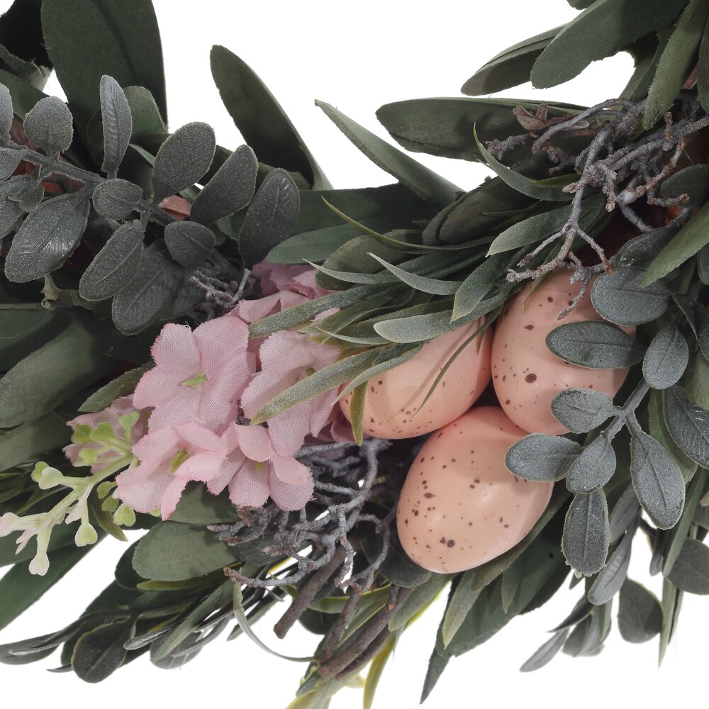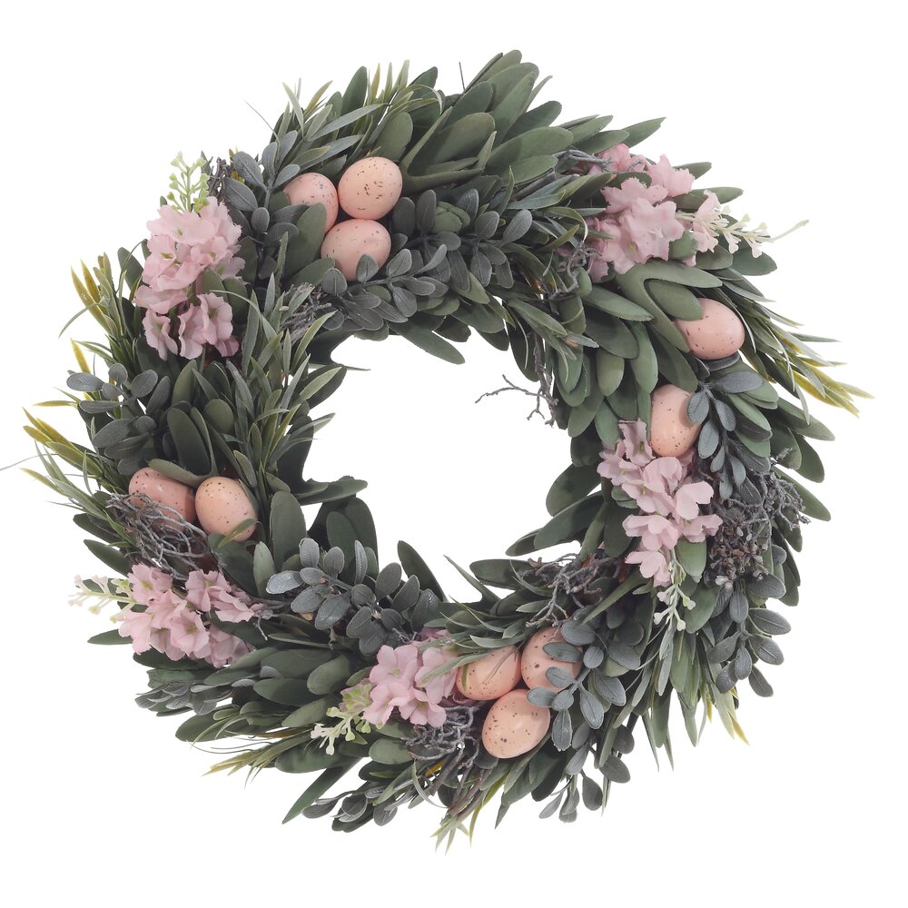 Изделие декоративное «Венок пасхальный» – нежное весеннее украшение для дома и праздничного стола. Объемный венок из плотной зелёной листвы декорирован миниатюрными пасхальными яичками мягкого розового оттенка и изящными цветами пастельных тонов. Натуральная цветовая гамма и продуманные детали создают атмосферу уюта, обновления и приближения светлого праздника Пасхи. Венок можно повесить на входную дверь, стену, над камином, использовать как центр композиции на столе или в фотозоне. Лёгкий и прочный, он не осыпается и долго сохраняет аккуратный вид, подойдёт как для квартиры, так и для загородного дома. Станет стильным акцентом интерьера и оригинальным пасхальным подарком для родных и друзей.