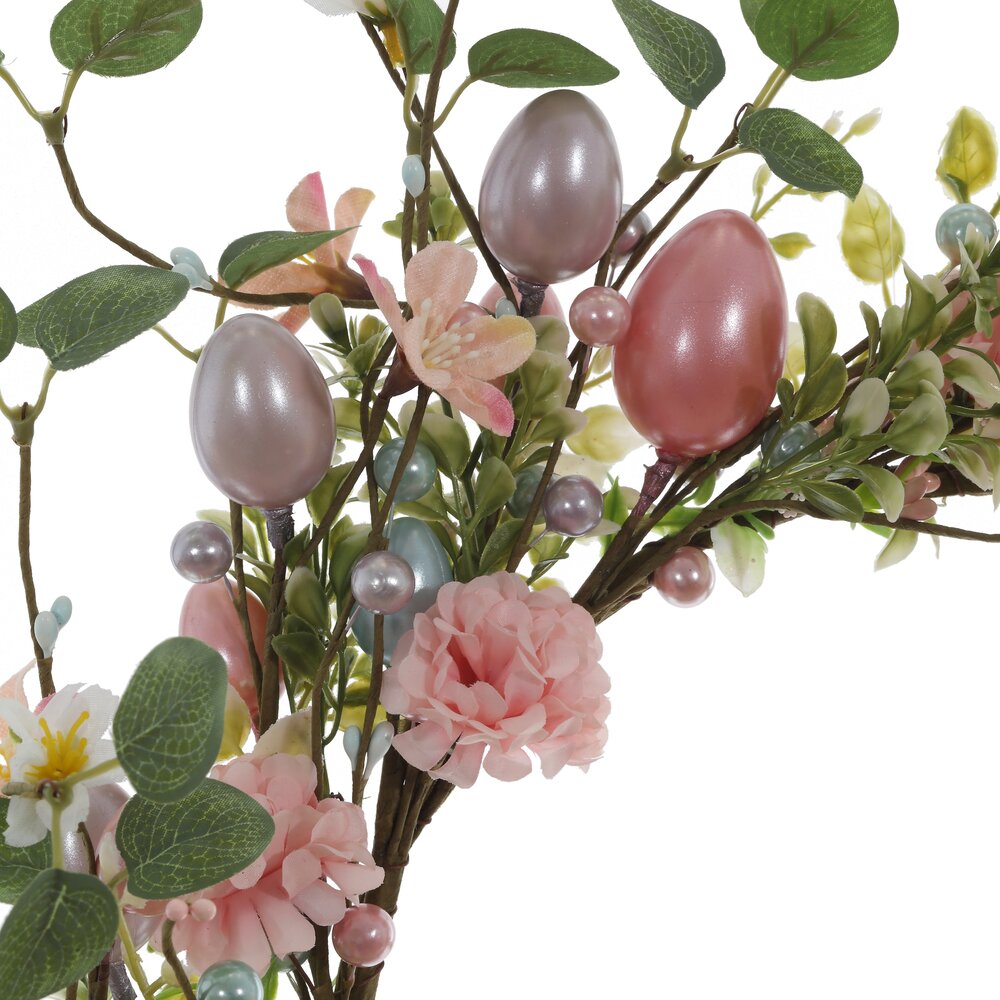 Изделие декоративное «Венок пасхальный» – нежное весеннее украшение для дома и праздничного стола. Объемный венок из зелёной листвы декорирован миниатюрными пасхальными яичками мягкого розового оттенка и изящными цветами пастельных тонов. Натуральная цветовая гамма и продуманные детали создают атмосферу уюта, обновления и приближения светлого праздника Пасхи. Венок можно повесить на входную дверь, стену, над камином, использовать как центр композиции на столе или в фотозоне. Лёгкий и прочный, он не осыпается и долго сохраняет аккуратный вид, подойдёт как для квартиры, так и для загородного дома. Станет стильным акцентом интерьера и оригинальным пасхальным подарком для родных и друзей.