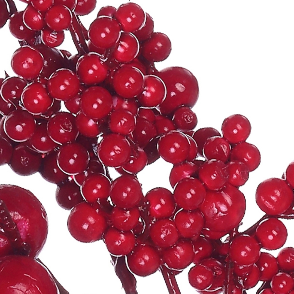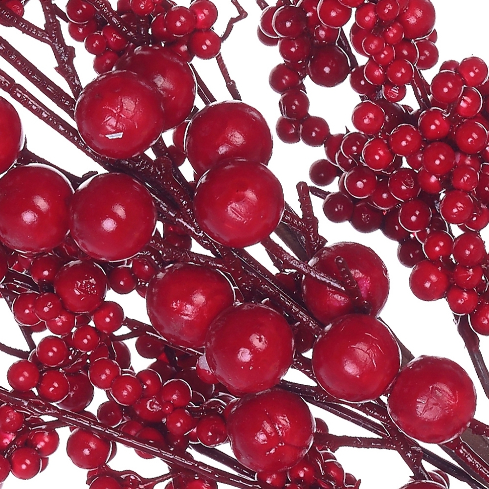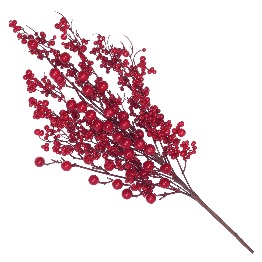 Очень эффектно смотрятся полыхающие красные ягоды. Эта контрастная ветка, несомненно, заслуживает почётного места в праздничной композиции.