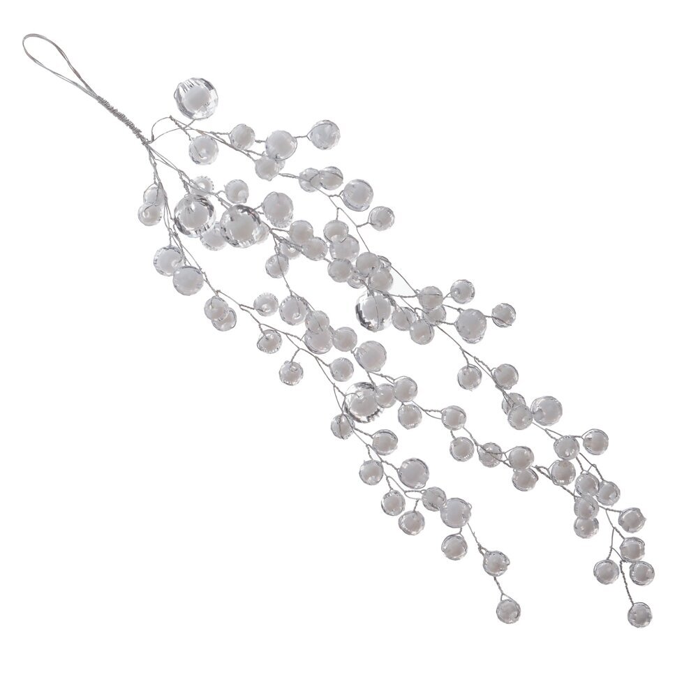 Элегантная веточка из тонкой серебристой проволоки, усыпанная жемчужными бусинами, создает волшебную атмосферу блеска и изящества. Бусины, словно застывшие во льду, придают украшению особую нежность и изысканность. Она прекрасно впишется в любой стиль оформления, создавая атмосферу праздничной сказки.