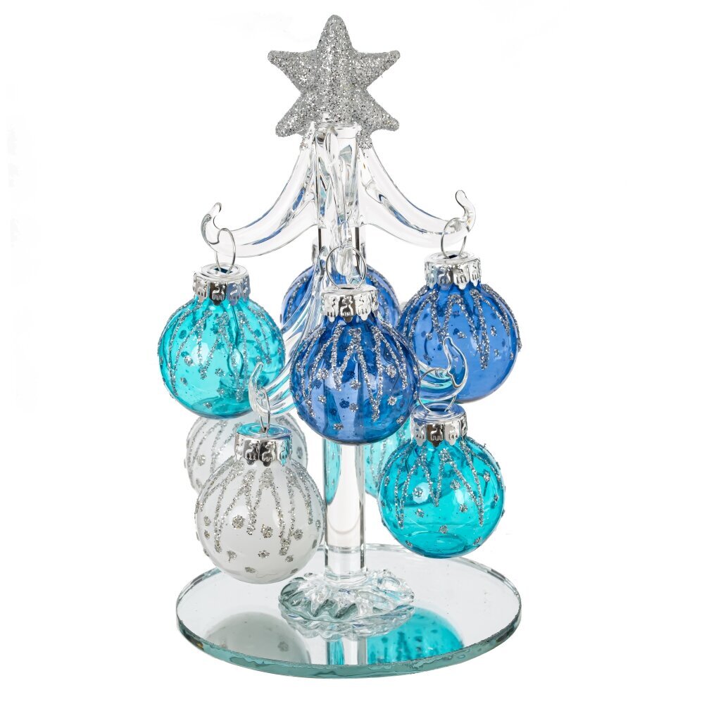 Декоративное изделие из стекла в форме ёлочки — это изысканный элемент новогоднего декора, который придаст любому интерьеру атмосферу уюта и праздника. Изделие выполнено из прозрачного стекла, тщательно обработанного для придания блеска и изящных очертаний. Особенность этой ёлочки — наличие съёмных разноцветных шариков, которые можно менять и комбинировать по своему вкусу. Шарики выполнены в серебристо-голубой цветовой гамме , что позволяет создавать уникальный образ композиции каждый раз. Такая ёлочка станет прекрасным подарком и стильным украшением как для дома, так и для офиса.