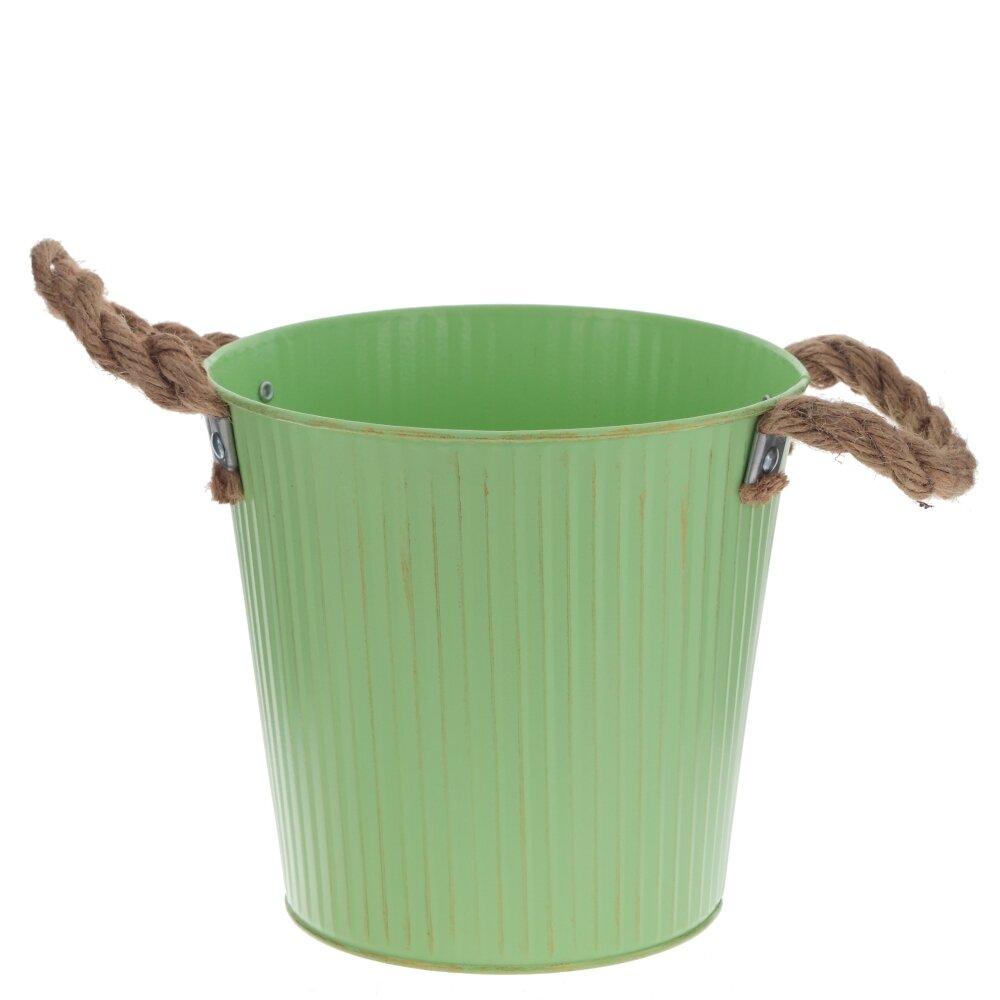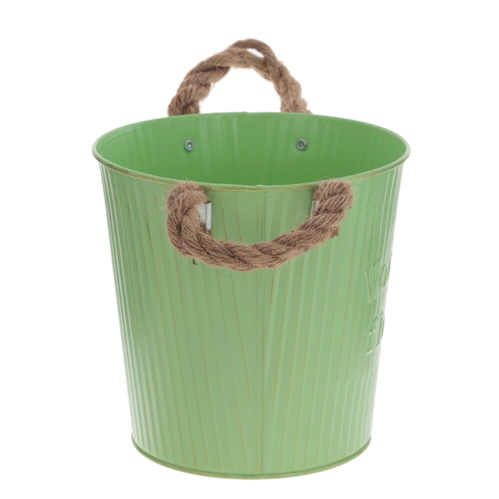 Кашпо из металла в виде красивого ведерка. Оно выполнено в приятном зеленом цвете, который добавит свежести и яркости в любой интерьер. Джутовые ручки придают кашпо особый шарм и оригинальность, а также добавляют некую эстетическую нотку в общий дизайн. Данное кашпо имеет объем 2600 мл. Это идеальное решение для выращивания и украшения разнообразных растений, как внутри помещения, так и на открытой террасе или балконе.