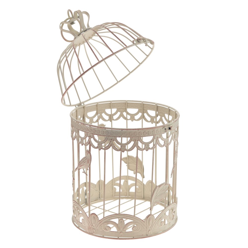 Эта декоративная клетка белого цвета выполнена из металла. Она имеет потертости, которые придают ей винтажный вид и добавляют характер. Клетка может использоваться для декорирования стола, полки или другой поверхности, для хранения различных предметов, таких как свечи, цветы, а так же для создания декоративных композиций. В целом, это очень универсальный и стильный декоративный предмет, который добавит изюминку в любой дом.