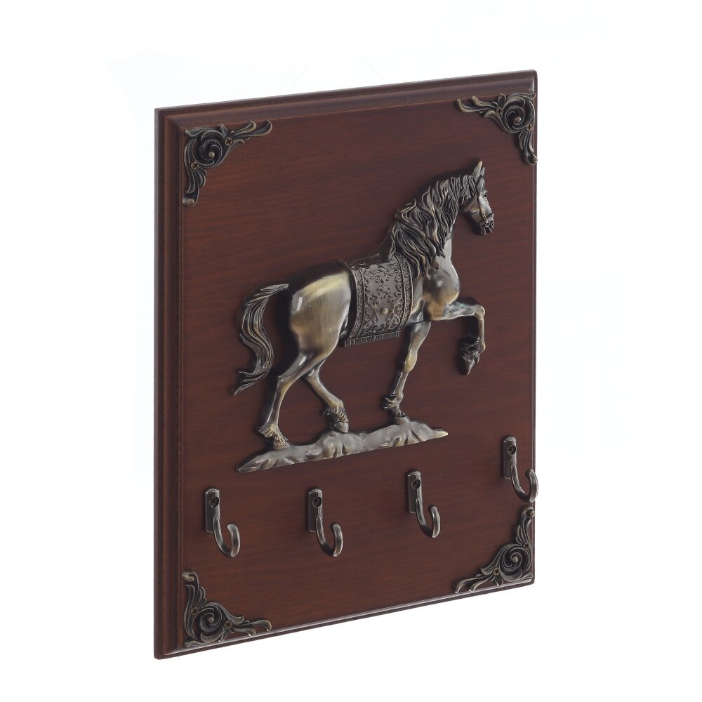 Ключница настенная, открытого типа, с четырьмя металлическими крючками и декором в виде лошади и ажурных угловых элементов. Ключница – предмет не только красивый, но и функциональный, поэтому ей найдется место и в офисе, и в квартире, и в загородном доме.