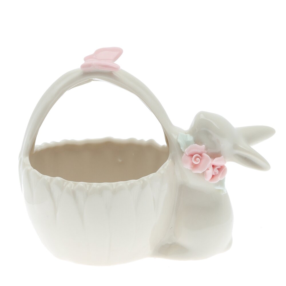 Конфетница "Заяц" — это изделие из фарфора, которое станет ярким акцентом на вашем праздничном столе, особенно в период Пасхи. Выполнена в форме корзины с фигуркой зайца белого цвета, излучает нежность и доброжелательность. На шее зайца розовые цветы, придающие фигурке игривый и миловидный вид. Конфетница станет не только функциональным предметом, но и уютным декором, который порадует глаз ваших гостей. Она прекрасно впишется в любой интерьер, добавляя нотки праздничного настроения.