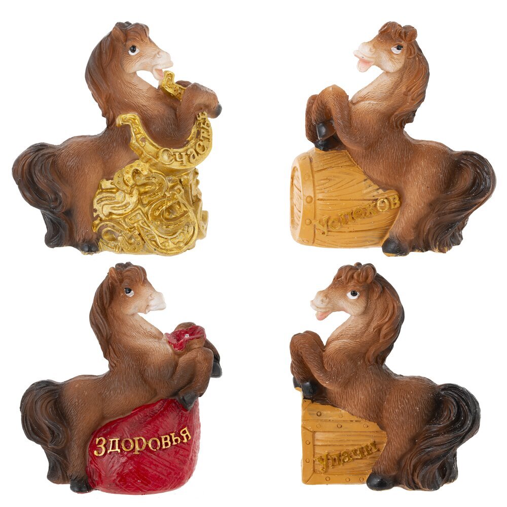 Декоративная фигурка "Лошадка" — стильный и символичный элемент декора, который станет прекрасным подарком к Новому году или талисманом на удачу. Выполненная из прочного полимерного материала, фигурка символизирует энергию, силу и процветание. Лошадка традиционно ассоциируется с удачей и успехом в делах. Идеально подойдёт для оформления интерьера дома или офиса, а также станет оригинальным дополнением к новогодней композиции. Этот стильный сувенир будет радовать вас и ваших близких весь год. Фигурка представлена в 4-х видах.