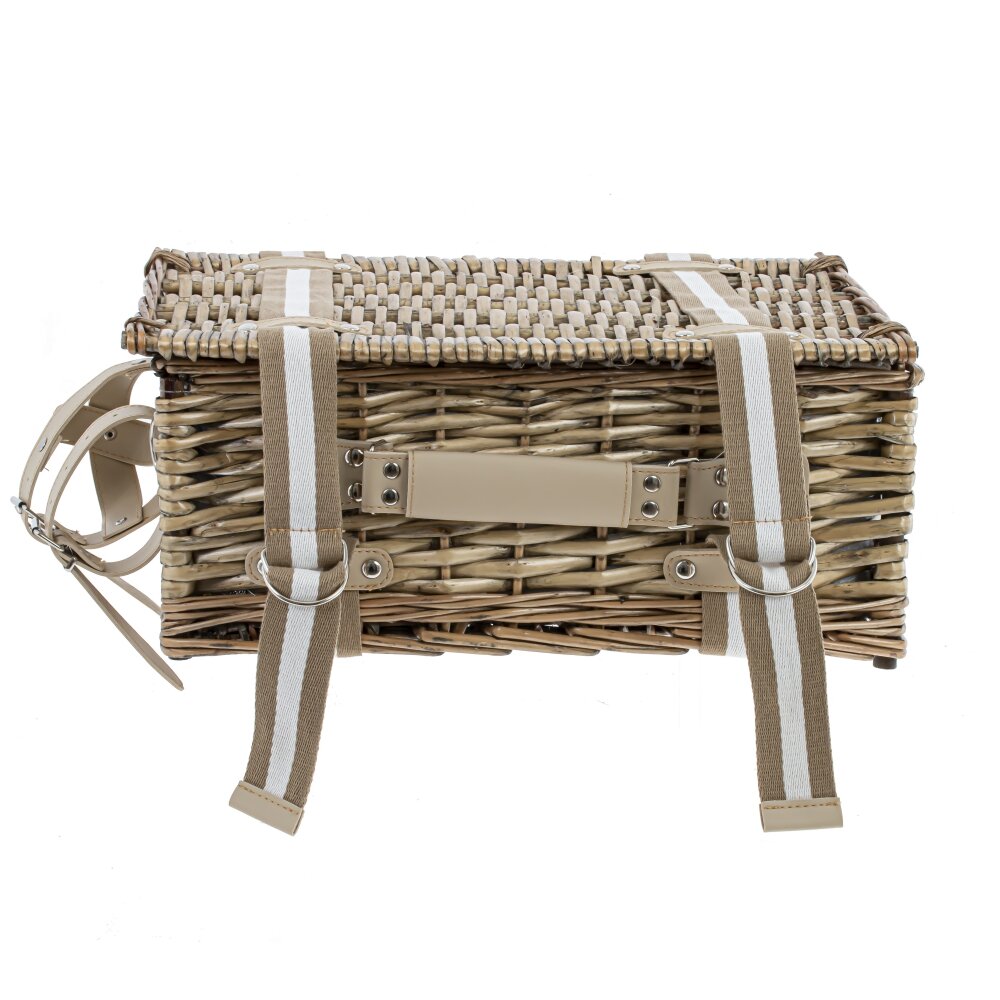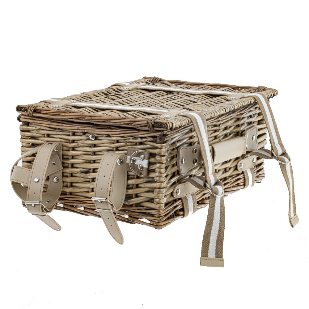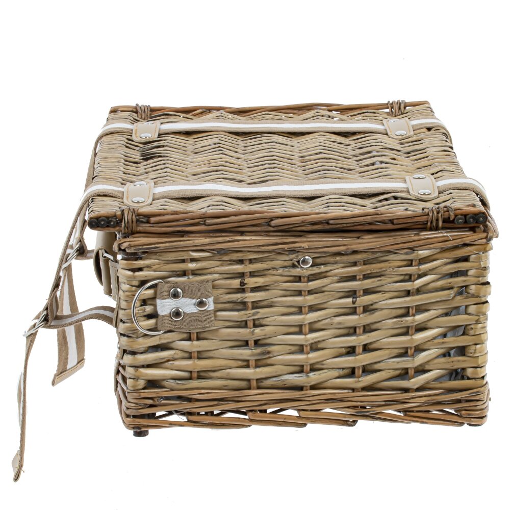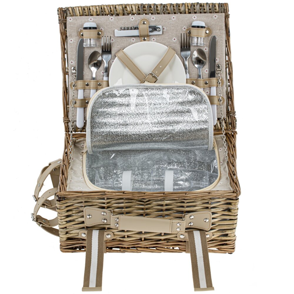 Ваша поездка на пикник теперь будет удобна и приятна с этой корзиной, ведь в ней находится все необходимое. Корзина в форме чемоданчика выполнена из натуральной лозы, имеет термоотделение. В набор входит: 2 тарелки из керамики размером L18 W18 H5 см, 2 фужера из пластика объемом 200 мл и размером L6,5 W6,5 H13 см. 2 столовых набора (нож, вилка, ложка), набор для специй, штопор. Материал: пластик и нержавеющая сталь.