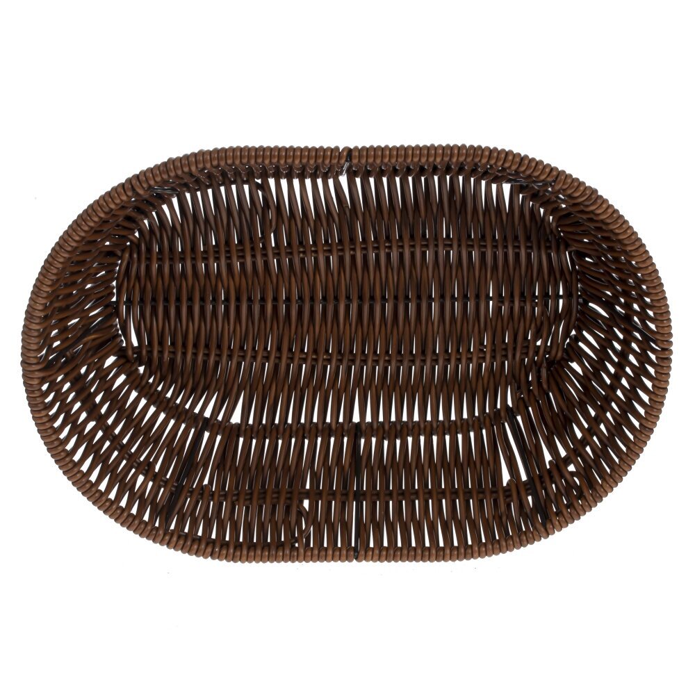 Корзина овальной формы, выполненная из полимерных материалов, имитирующих традиционное плетение. Благодаря использованию современных материалов корзина отличается высокой прочностью и долговечностью, не боится влаги и загрязнений. Такая корзина идеально подходит для хранения различных продуктов, в том числе хлеба, фруктов или овощей. Лёгкая и простая в уходе, она прекрасно сохраняет форму даже при длительной эксплуатации. Эстетичный внешний вид и универсальность делают корзину из полимерных материалов отличным выбором для современной кухни и домашнего интерьера.