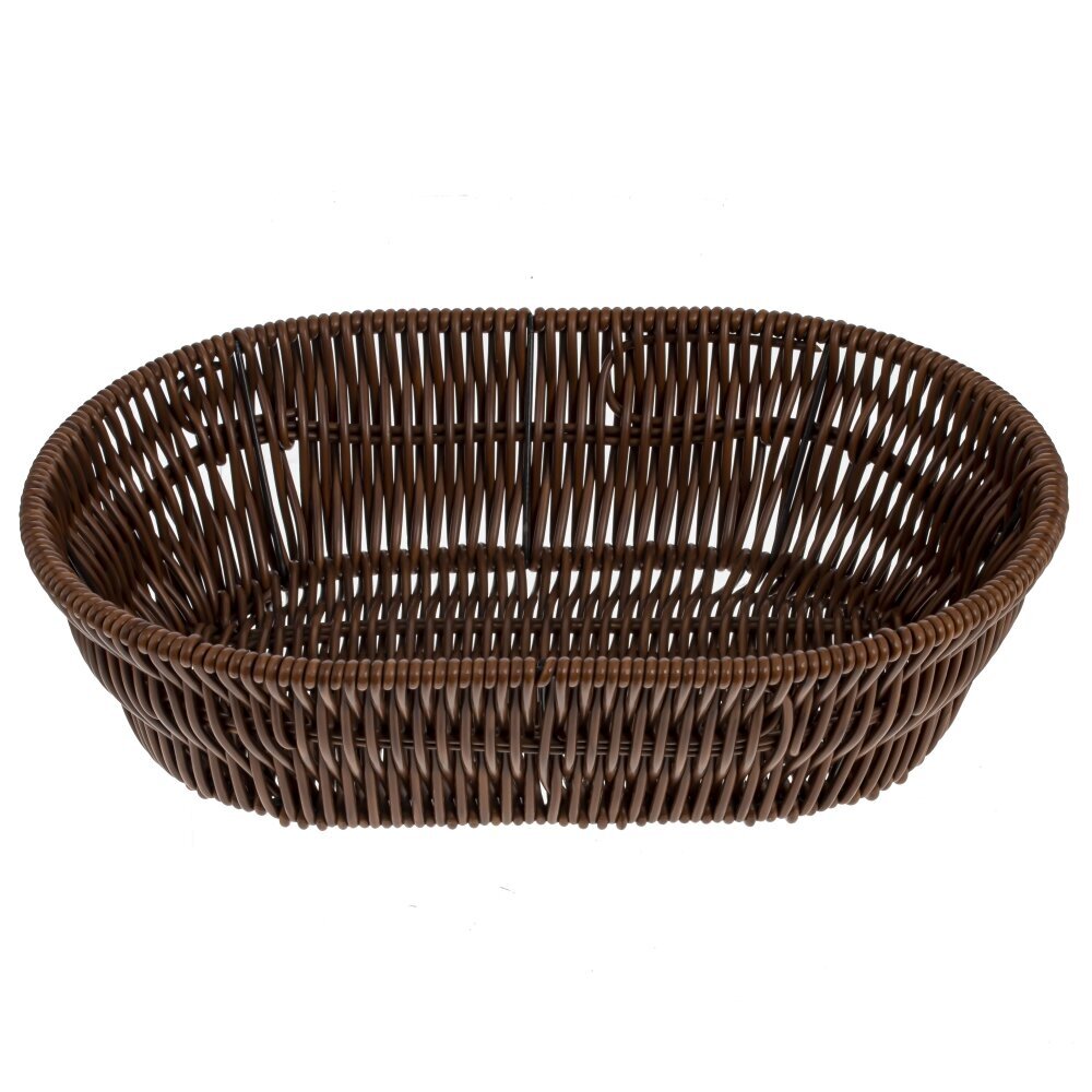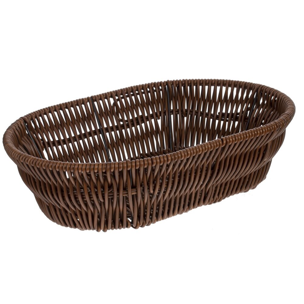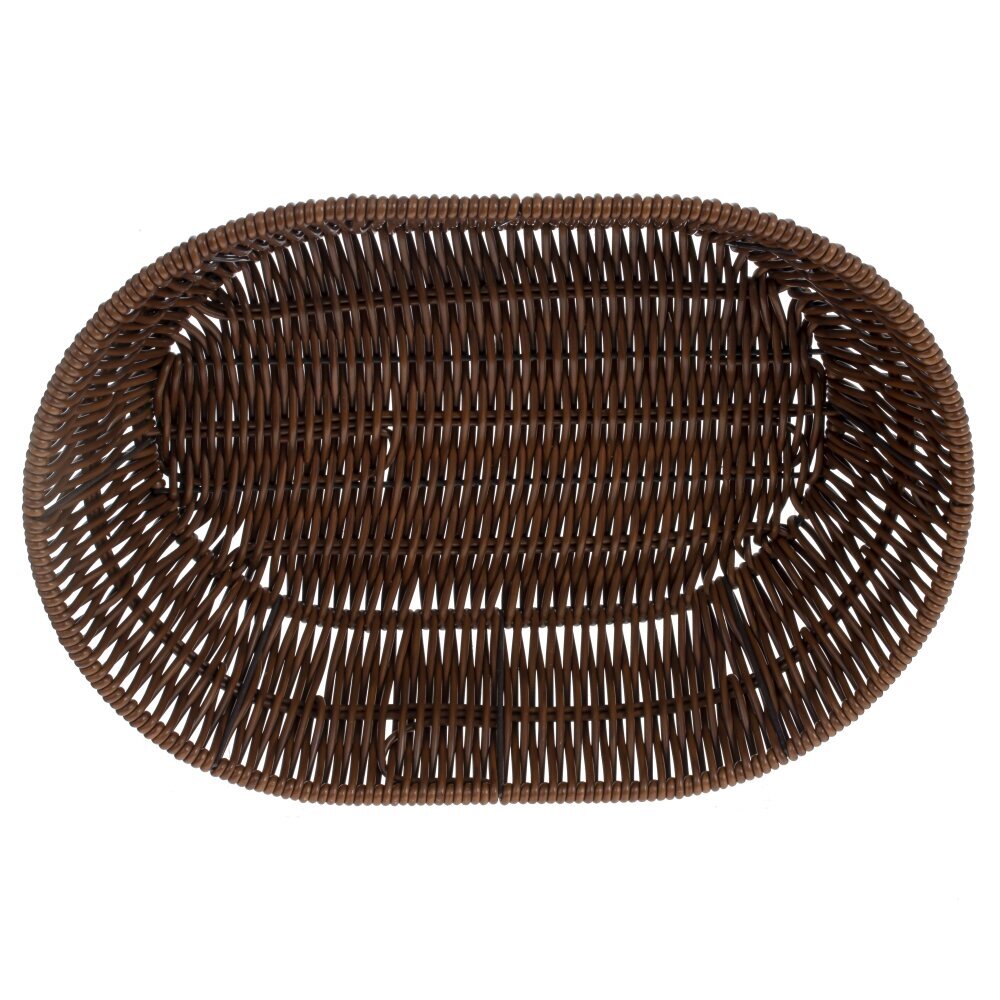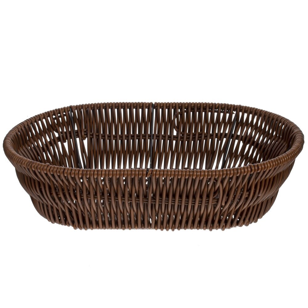Корзина овальной формы, выполненная из полимерных материалов, имитирующих традиционное плетение. Благодаря использованию современных материалов корзина отличается высокой прочностью и долговечностью, не боится влаги и загрязнений. Такая корзина идеально подходит для хранения различных продуктов, в том числе хлеба, фруктов или овощей. Лёгкая и простая в уходе, она прекрасно сохраняет форму даже при длительной эксплуатации. Эстетичный внешний вид и универсальность делают корзину из полимерных материалов отличным выбором для современной кухни и домашнего интерьера.