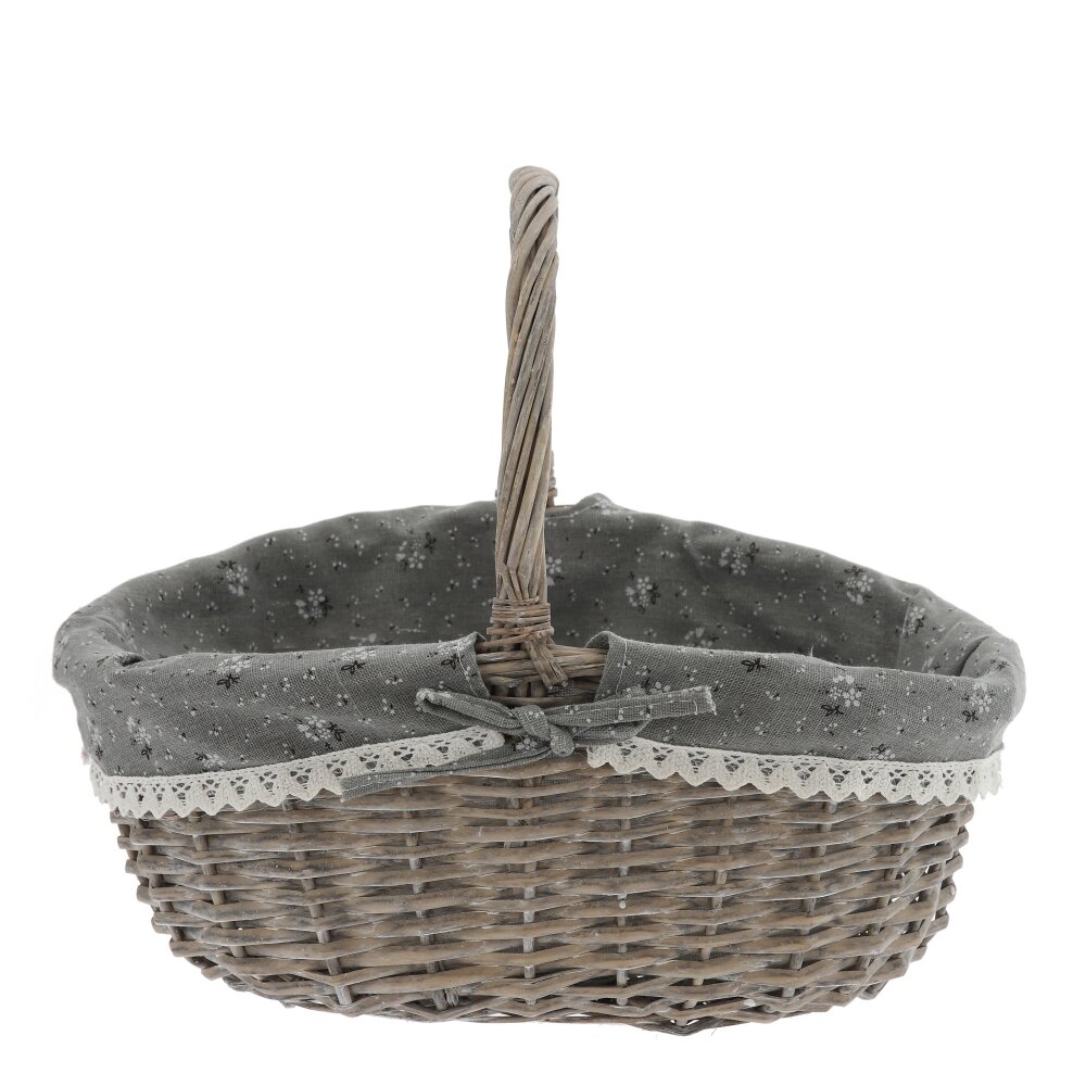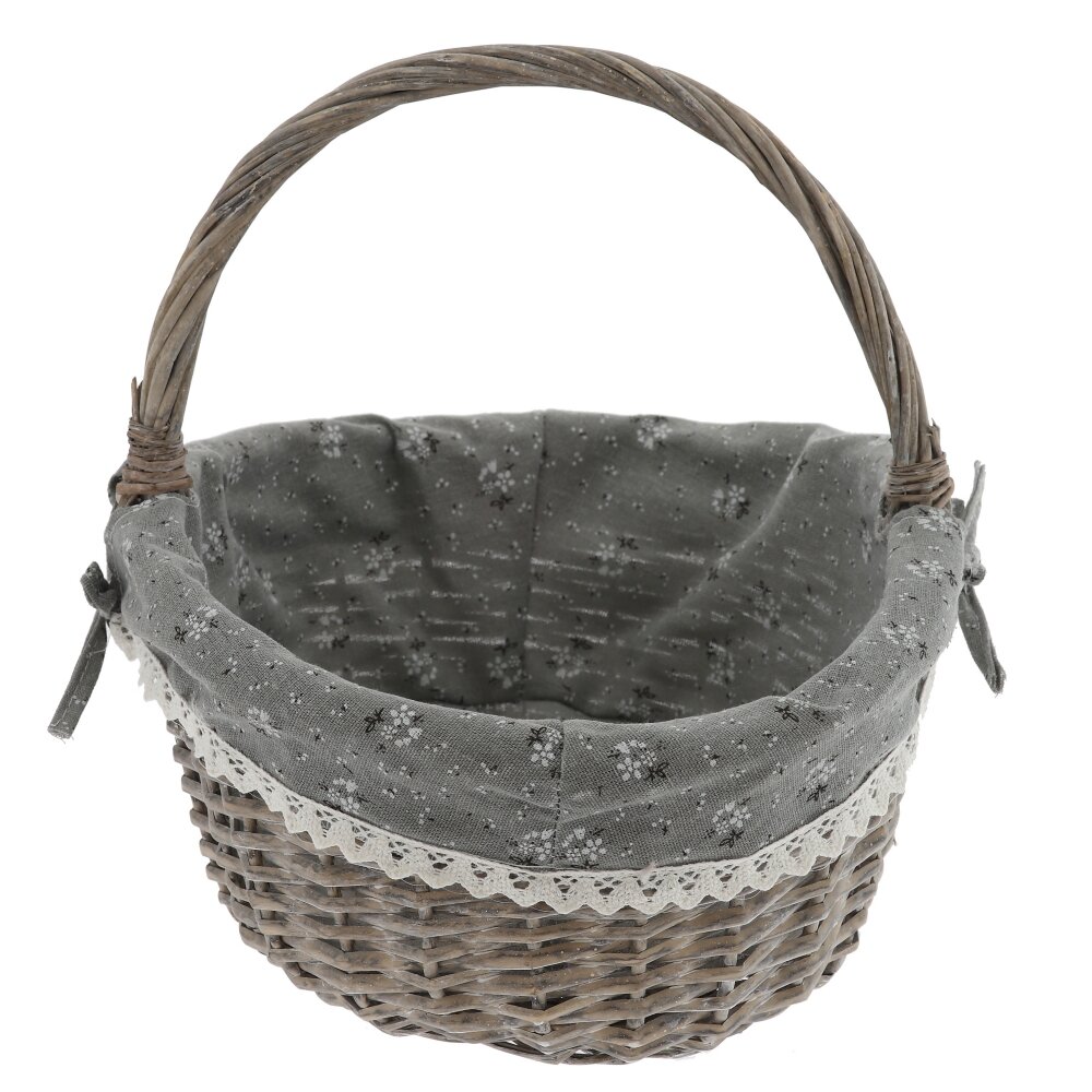 Элегантная плетёная корзина с ручкой — стильный и практичный аксессуар для дома. Изготовлена из натуральной лозы благородного серо?коричневого оттенка, благодаря чему выглядит особенно уютно и легко впишется в интерьер в стиле прованс, кантри или эко. Внутри корзина оформлена мягкой серой тканевой вставкой с мелким цветочным рисунком, по краю украшенной ажурным кружевом и аккуратным бантиком. Подойдёт для хранения мелочей, косметики, рукоделия, детских игрушек, а также для сервировки стола или оформления подарочных наборов. Прочная ручка делает перенос удобным и безопасным.