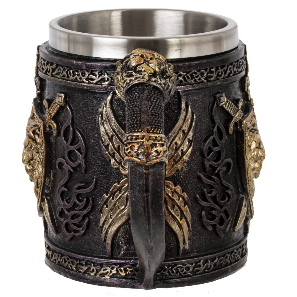 Кружка, выполненная из нержавеющей стали и акриловой смолы, представляет собой идеальное сочетание прочности и стильного дизайна. Ее цилиндрическая форма и удобная ручка обеспечивает удобный захват и комфорт во время использования. Объем в 450 мл позволяет налить достаточно любимого напитка, будь то освежающее пиво, крепкий кофе или травяной чай. Одной из самых привлекательных особенностей этой кружки является ее внешний декор - доспехи, с эффектом резьбы по металлу. Эта кружка станет отличным подарком для любителей пива и ценителей качественных аксессуаров. Ее можно использовать как на домашних посиделках, так и на пикниках. Эта кружка легко чистится и не впитывает запахи, что делает ее практичным и рациональным выбором. Придайте любому мероприятию особую атмосферу с этой великолепной кружкой, которая будет восхищать всех своим дизайном и функциональностью.