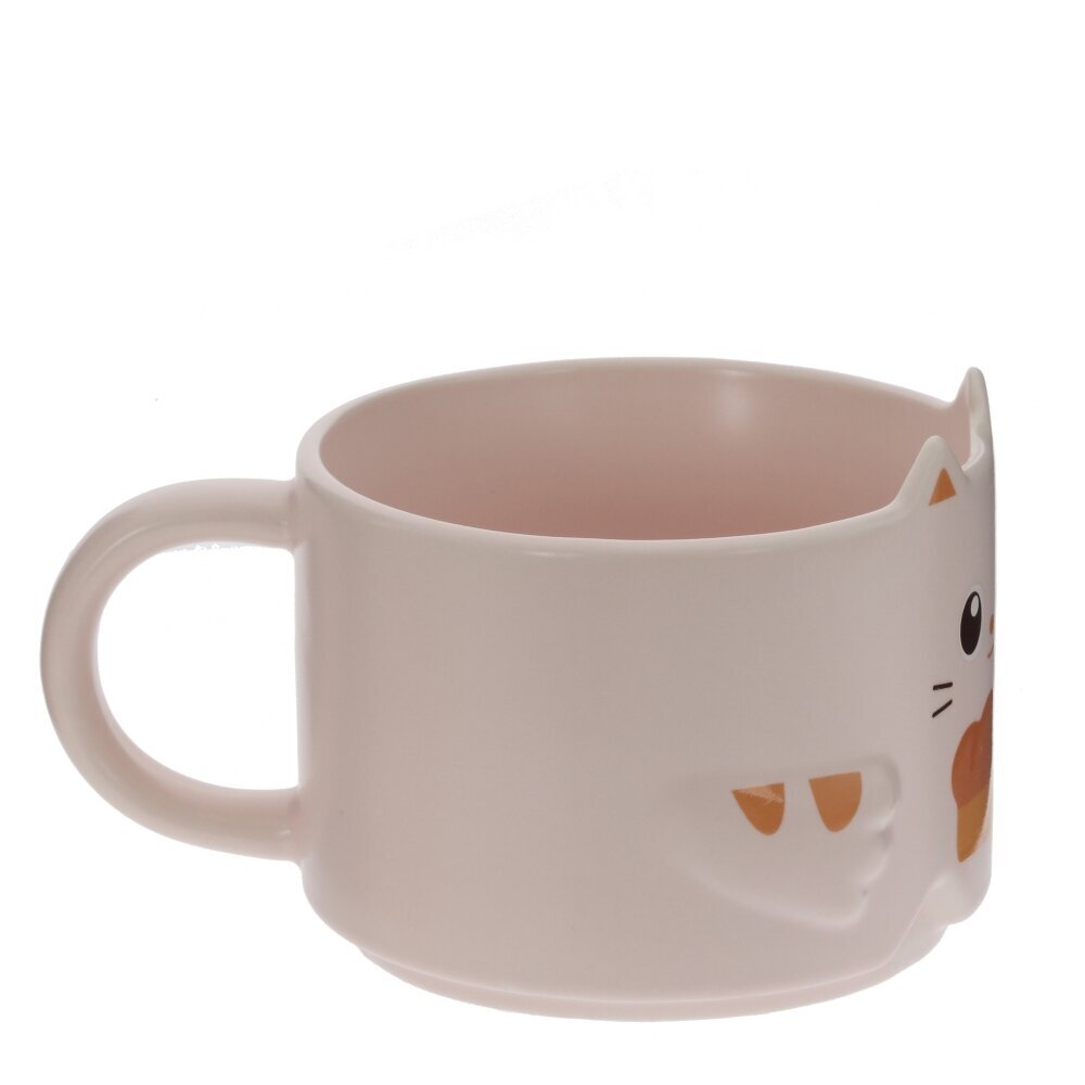 Очаровательная кружка объёмом 280 мл из качественного фарфора станет любимой посудой для утреннего чая, какао или детского напитка. Нежный розовый цвет и забавный рисунок котёнка с ушками на краю создают уютное настроение и украшают любой стол. Удобная круглая ручка хорошо ложится в руку, кружку комфортно держать даже ребёнку. Фарфор устойчив к воздействию высоких температур, не впитывает запахи и легко моется. Такая кружка подойдёт для дома, офиса, а также станет милым и практичным подарком для ценителей забавных аксессуаров и всех любителей котиков.