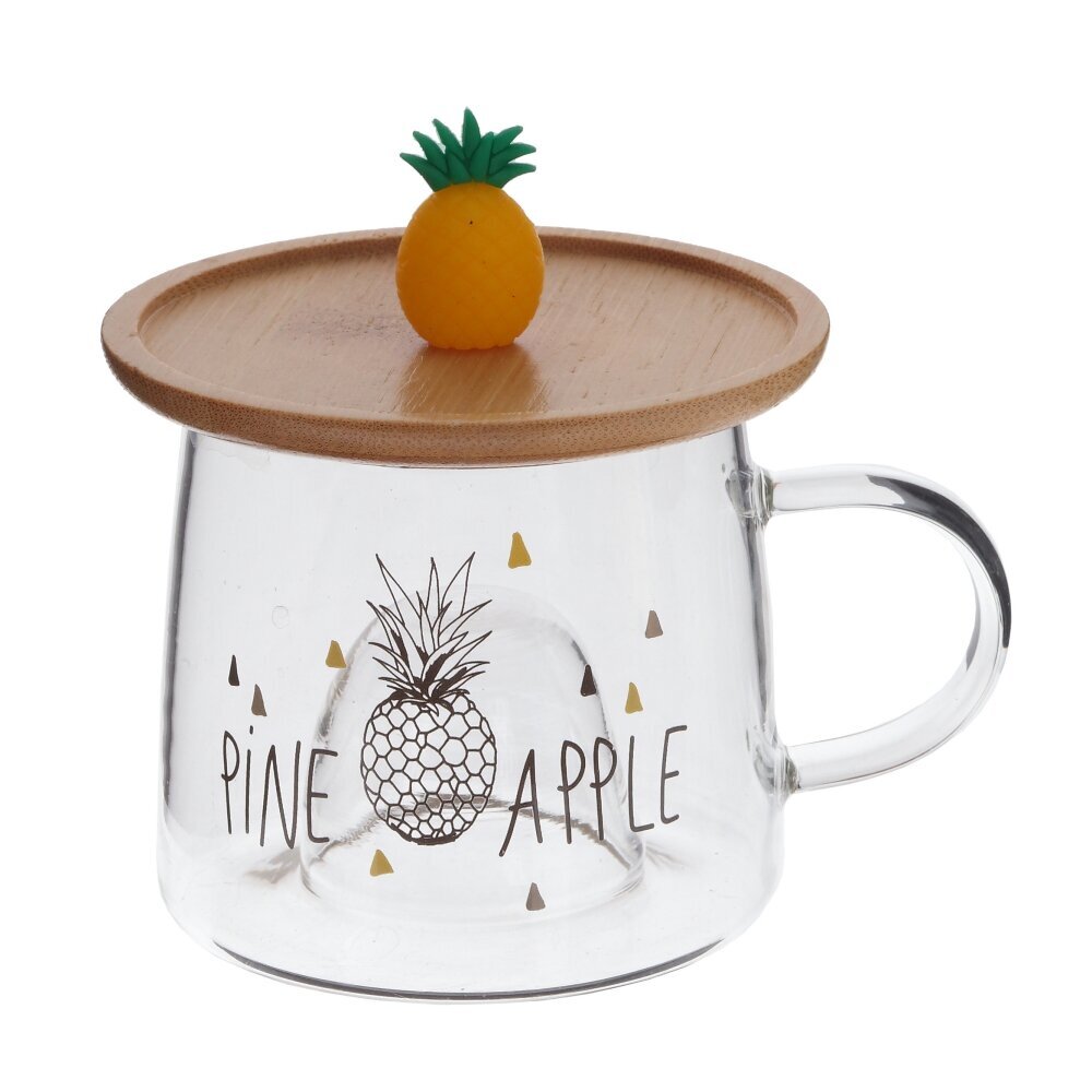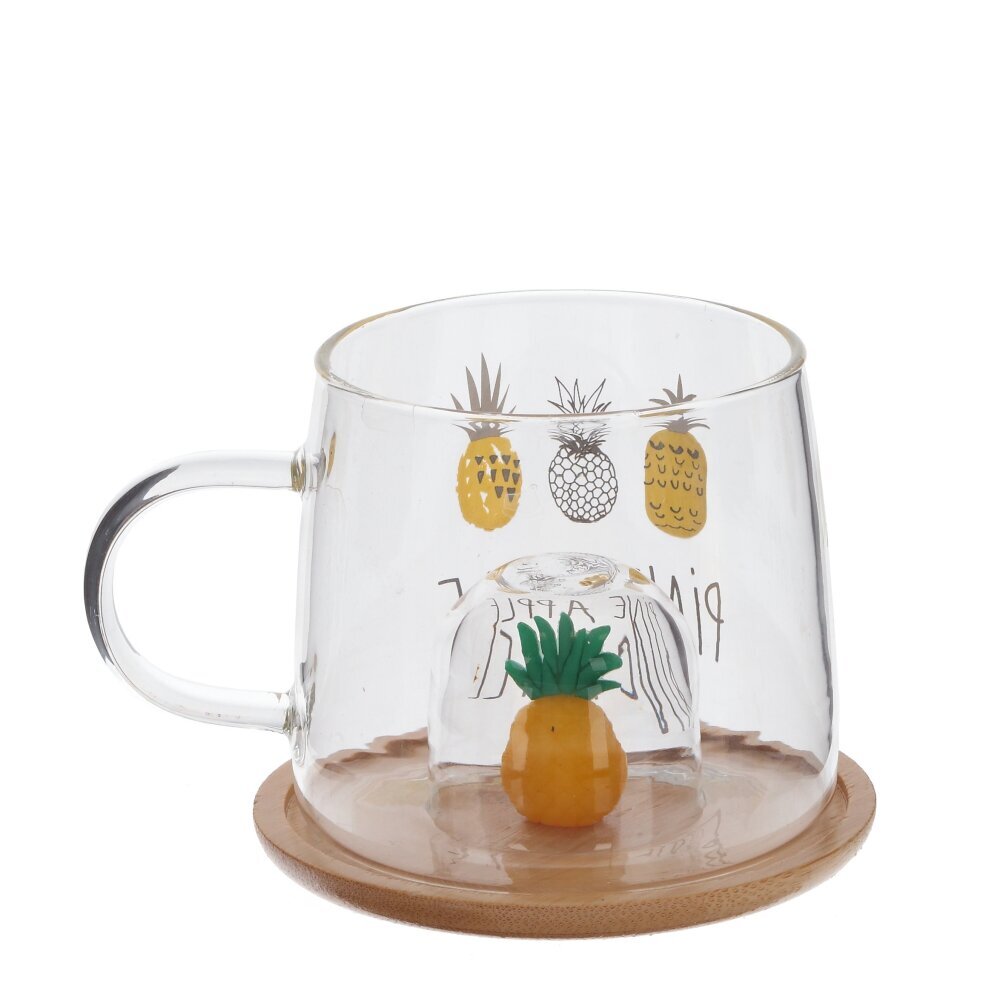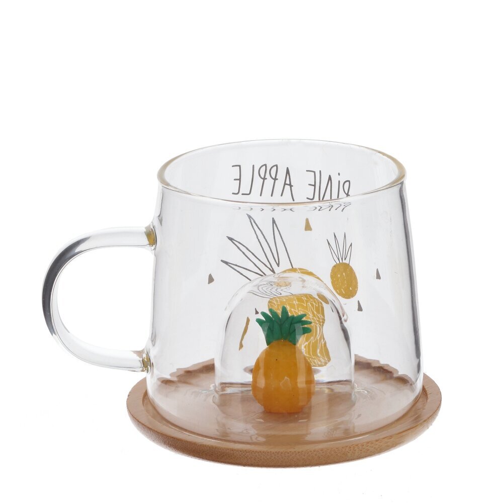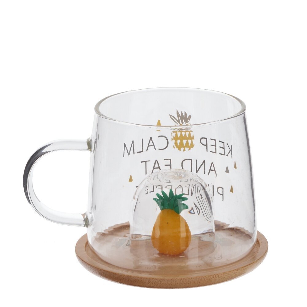 Стеклянная кружка объемом 300 мл с деревянной крышкой - это прекрасный выбор для любителей чая, кофе и других горячих напитков. Каждая деталь этой кружки продумана до мелочей: удобная форма, милый декор в виде ананаса на крышке и на самой кружке. На дне кружки углубление, созданное, чтобы крышку с фигуркой можно было использовать как подставку. Фигурка точно вписывается в углубление и будто бы «плавает» в чашке . Эта стильная стеклянная кружка станет не только удобным предметом для повседневного использования, но и ярким акцентом в вашем интерьере. Позвольте себе насладиться вкусом любимого напитка в оригинальной посуде. Представлена в четырех вариантах.