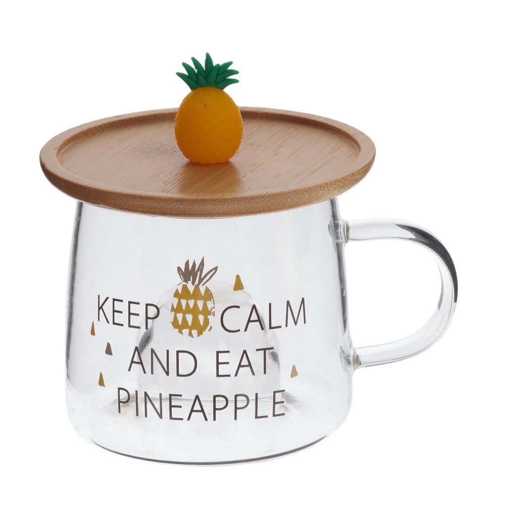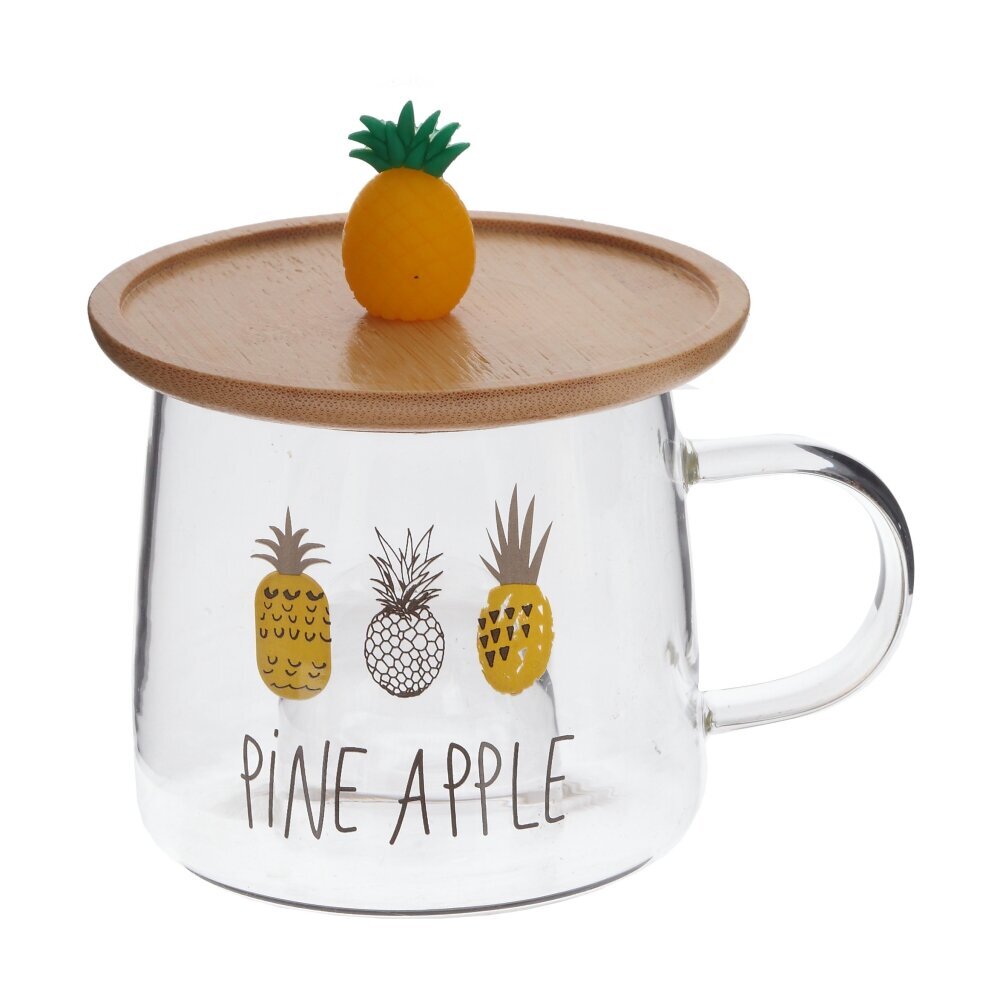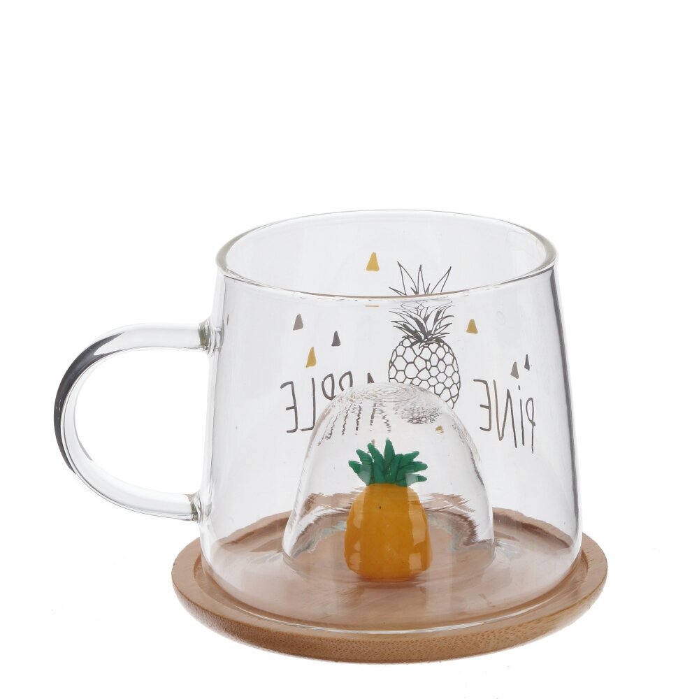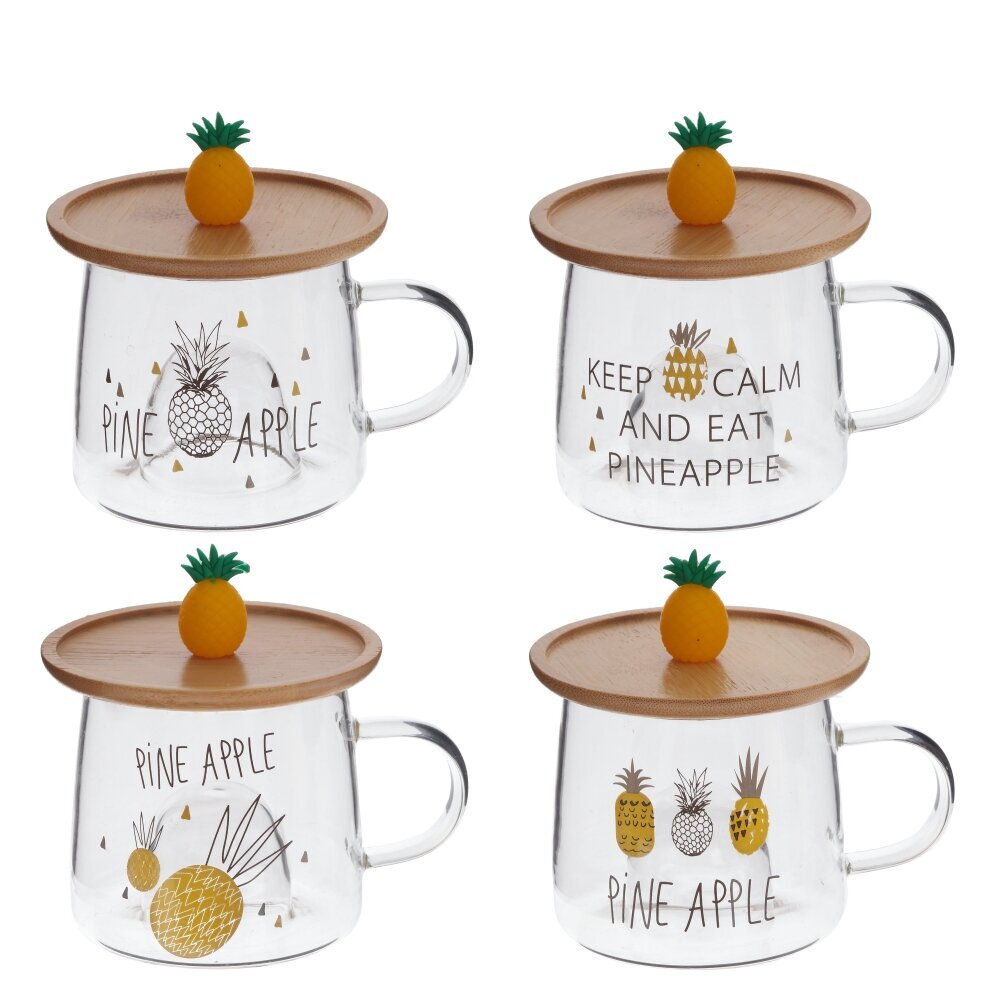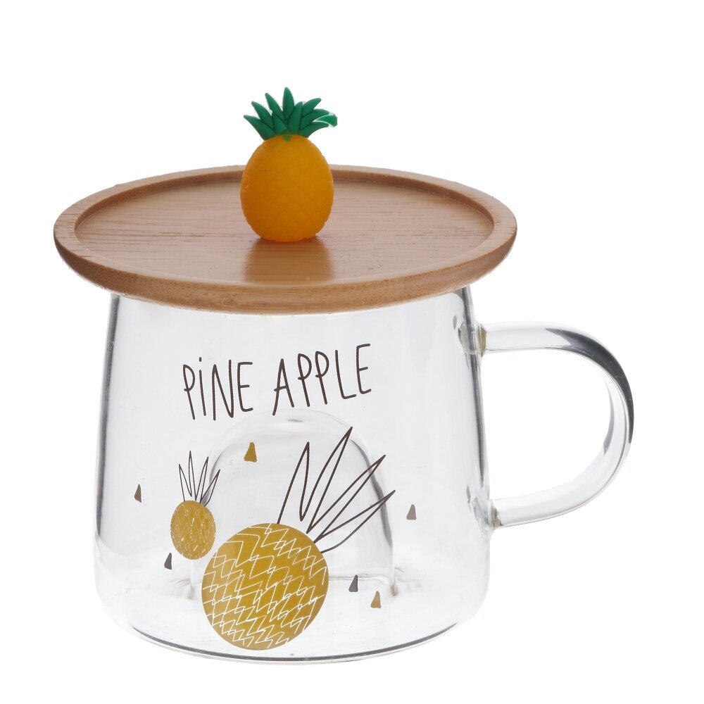 Стеклянная кружка объемом 300 мл с деревянной крышкой - это прекрасный выбор для любителей чая, кофе и других горячих напитков. Каждая деталь этой кружки продумана до мелочей: удобная форма, милый декор в виде ананаса на крышке и на самой кружке. На дне кружки углубление, созданное, чтобы крышку с фигуркой можно было использовать как подставку. Фигурка точно вписывается в углубление и будто бы «плавает» в чашке . Эта стильная стеклянная кружка станет не только удобным предметом для повседневного использования, но и ярким акцентом в вашем интерьере. Позвольте себе насладиться вкусом любимого напитка в оригинальной посуде. Представлена в четырех вариантах.
