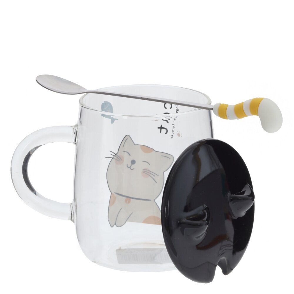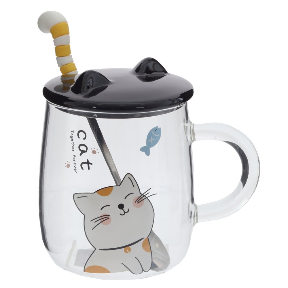 Очаровательная кружка с крышкой и ложкой объёмом 400 мл станет любимым аксессуаром для чаепития дома и на работе. Прозрачный корпус из прочного стекла украшен милым котиком и надписью «cat – together forever», создающей уютное настроение. Крышка из фарфора выполнена в форме кошачьей головы с ушками и надежно сохраняет напиток тёплым, защищая его от пыли и проливаний. Металлическая ложка с удобной ручкой в виде полосатого хвоста гармонично дополняет дизайн и удобна для размешивания сахара или добавок. Кружка подходит для горячих и холодных напитков, станет практичным и стильным подарком для детей и взрослых, любящих оригинальные и забавные вещи.