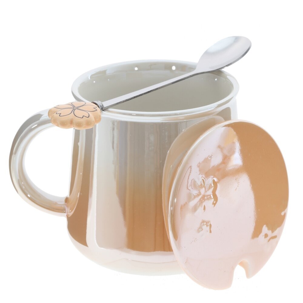 Стильная кружка объемом 350 мл, выполненная из гладкого фарфора с глянцевой глазурью. В комплект входит металлическая ложка, проходящая через аккуратный вырез в крышке; на конце ручки — удобный цветок?держатель в тон. Плотная крышка помогает дольше сохранять тепло и аромат напитка, защищает от пыли и брызг. Округлая эргономичная ручка комфортно лежит в руке, стенки гладкие и приятные на ощупь. Идеальна для чая, кофе, какао или травяных настоев дома и в офисе. Лаконичный дизайн легко сочетается с современной посудой и подходит в подарок. Материалы: фарфор, металл. Рекомендуется бережный уход, мыть мягкой губкой; металлическую ложку не использовать в микроволновке. Представлено в трех вариантах.