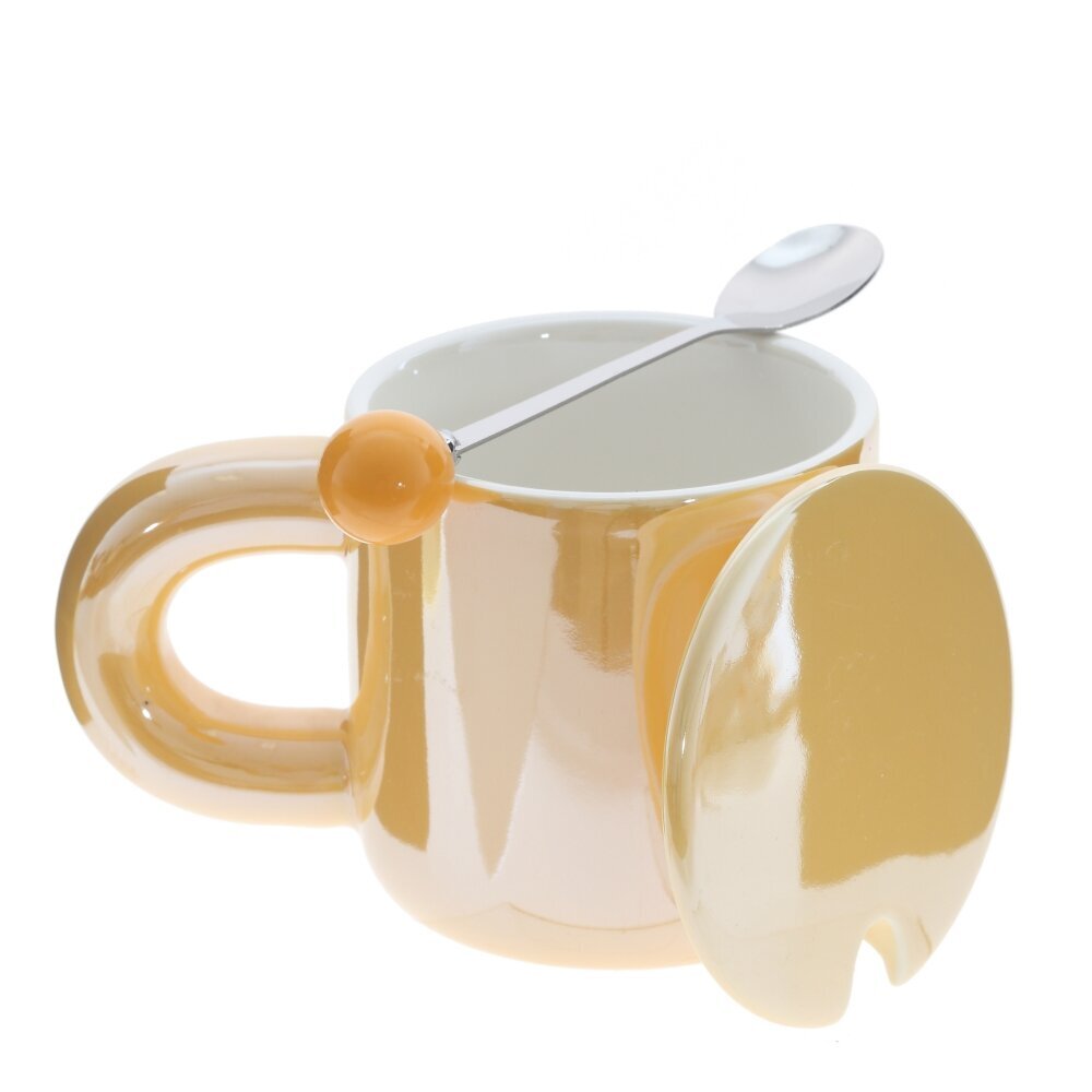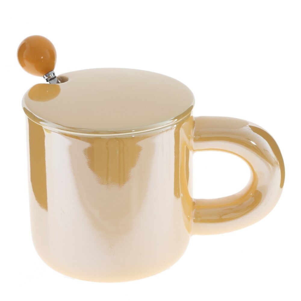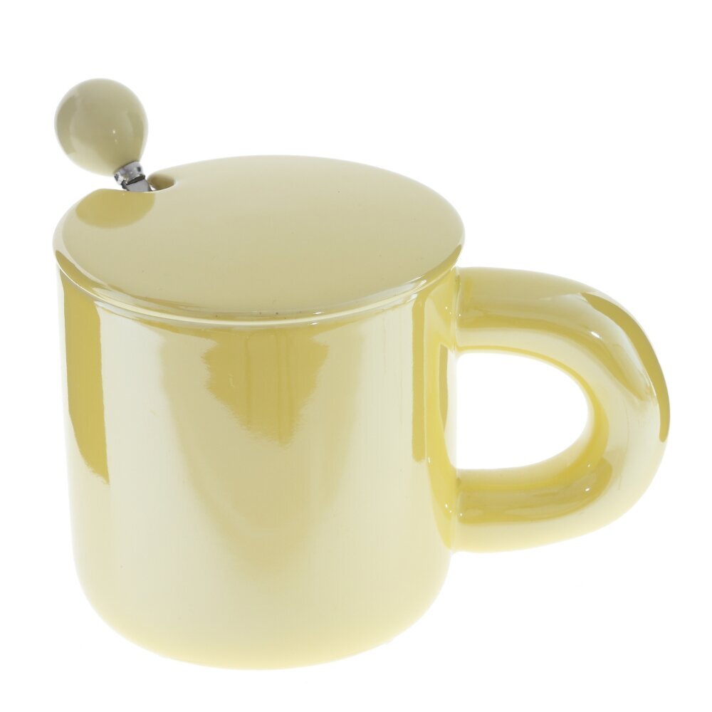 Стильная кружка объемом 300 мл, выполненная из гладкого фарфора с глянцевой глазурью. В комплект входит металлическая ложка, проходящая через аккуратный вырез в крышке; на конце ручки — удобный шарик?держатель в тон. Плотная крышка помогает дольше сохранять тепло и аромат напитка, защищает от пыли и брызг. Округлая эргономичная ручка комфортно лежит в руке, стенки гладкие и приятные на ощупь. Идеальна для чая, кофе, какао или травяных настоев дома и в офисе. Лаконичный дизайн легко сочетается с современной посудой и подходит в подарок. Материалы: фарфор, металл. Рекомендуется бережный уход, мыть мягкой губкой; металлическую ложку не использовать в микроволновке. Представлено в четырех вариантах.